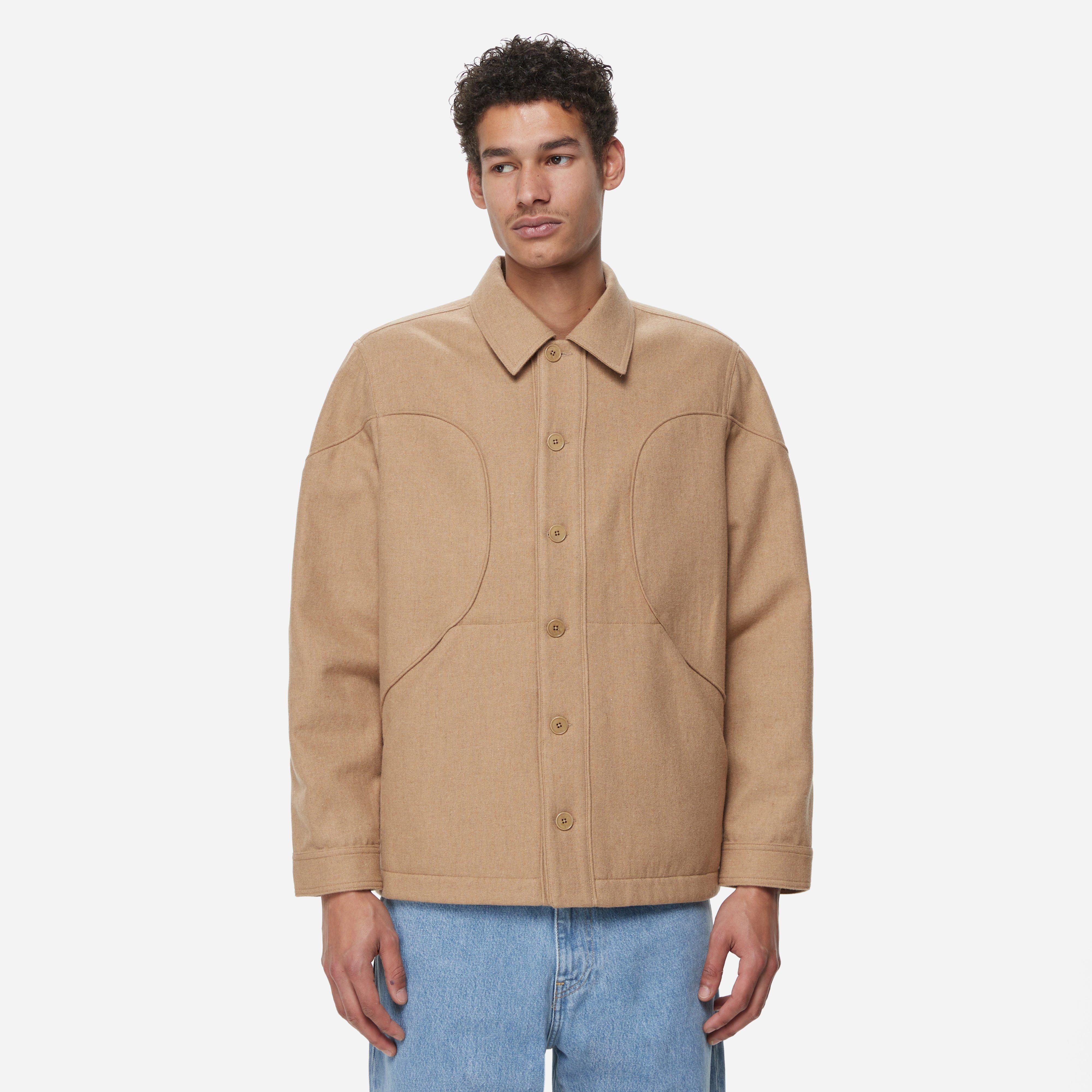 Beige - 60% wool, 35% polyester, 5% other - Panelled pattern - Button closure - Relaxed fit, take your normal size - Model is 6'4" and wears a size medium.