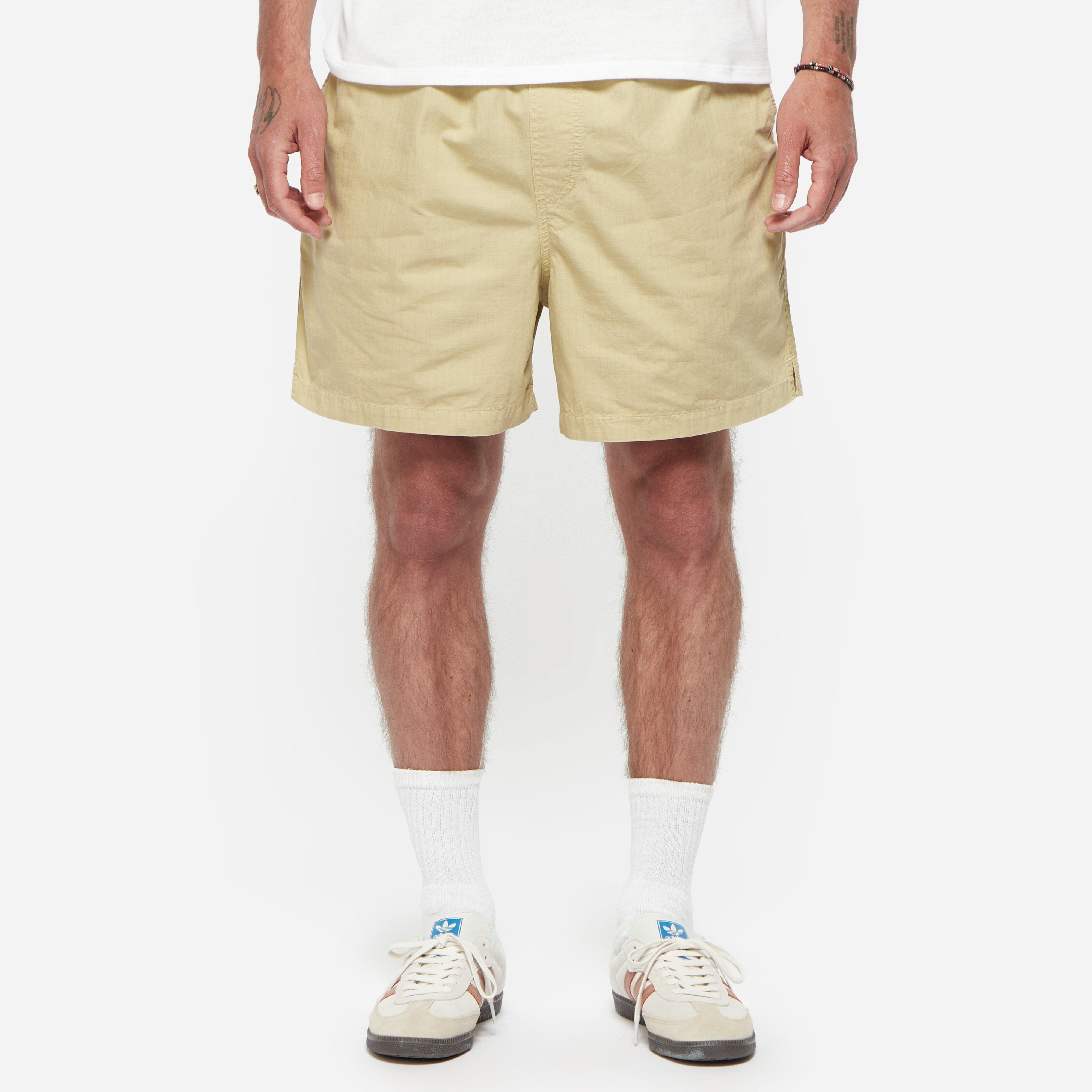 Beige - 100% organic cotton ripstop - Elastic drawstring waist - Garment dyed - Side seam vents at hem - Mock J stitch fly - Regular fit, take your normal size - Model is 6'1" and wears a size medium - Waist size guide (in.) - S=28.3, M=30.7, L=32.7, XL=35.5