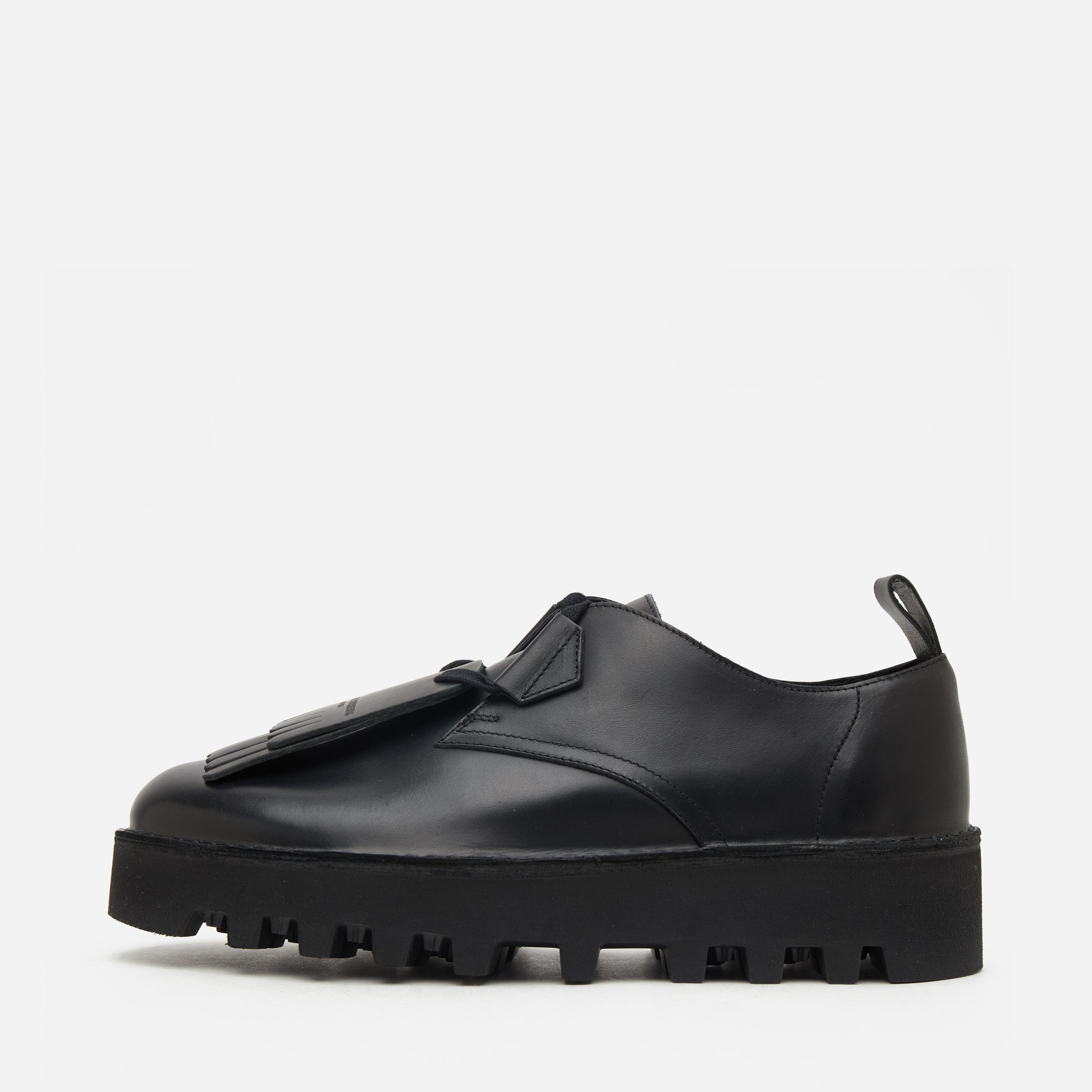 Crafted in premium suede, this collaborative silhouette takes its name from the Egyptian bazaar where the original Desert Boots were crafted and balances Clarks' heritage craftsmanship with Daiki Suzuki's subversive, workwear-inflected aesthetic. Black - Leather upper, Vibram Morflex sole - Removable kiltie - D ring - Pull tab - Co-branding - Style code: 26183855