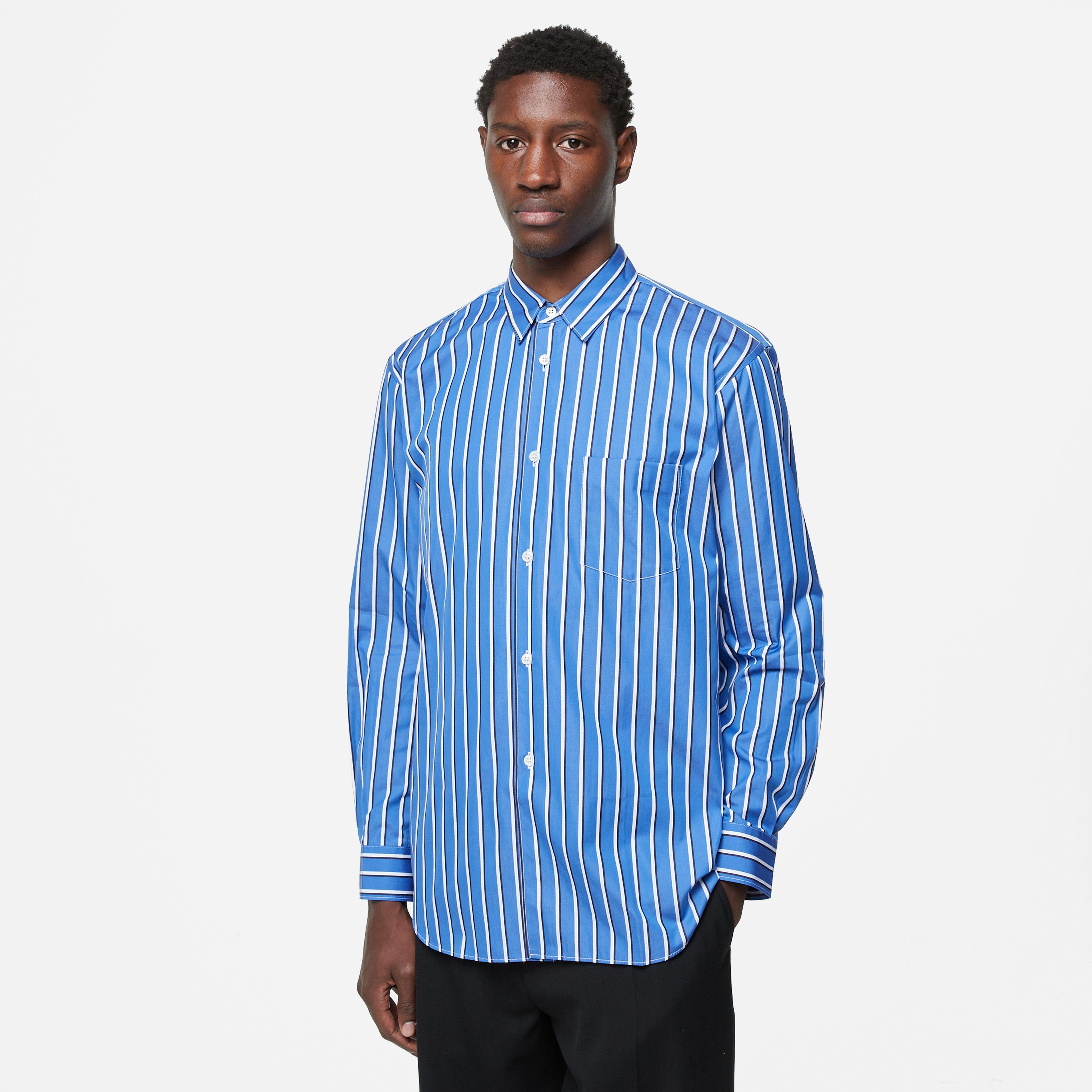 Blue - 100% cupro - Made in France - Point lapel - Chest pocket - Button closure - Curved hem - Model is 6'1" and wears size medium.