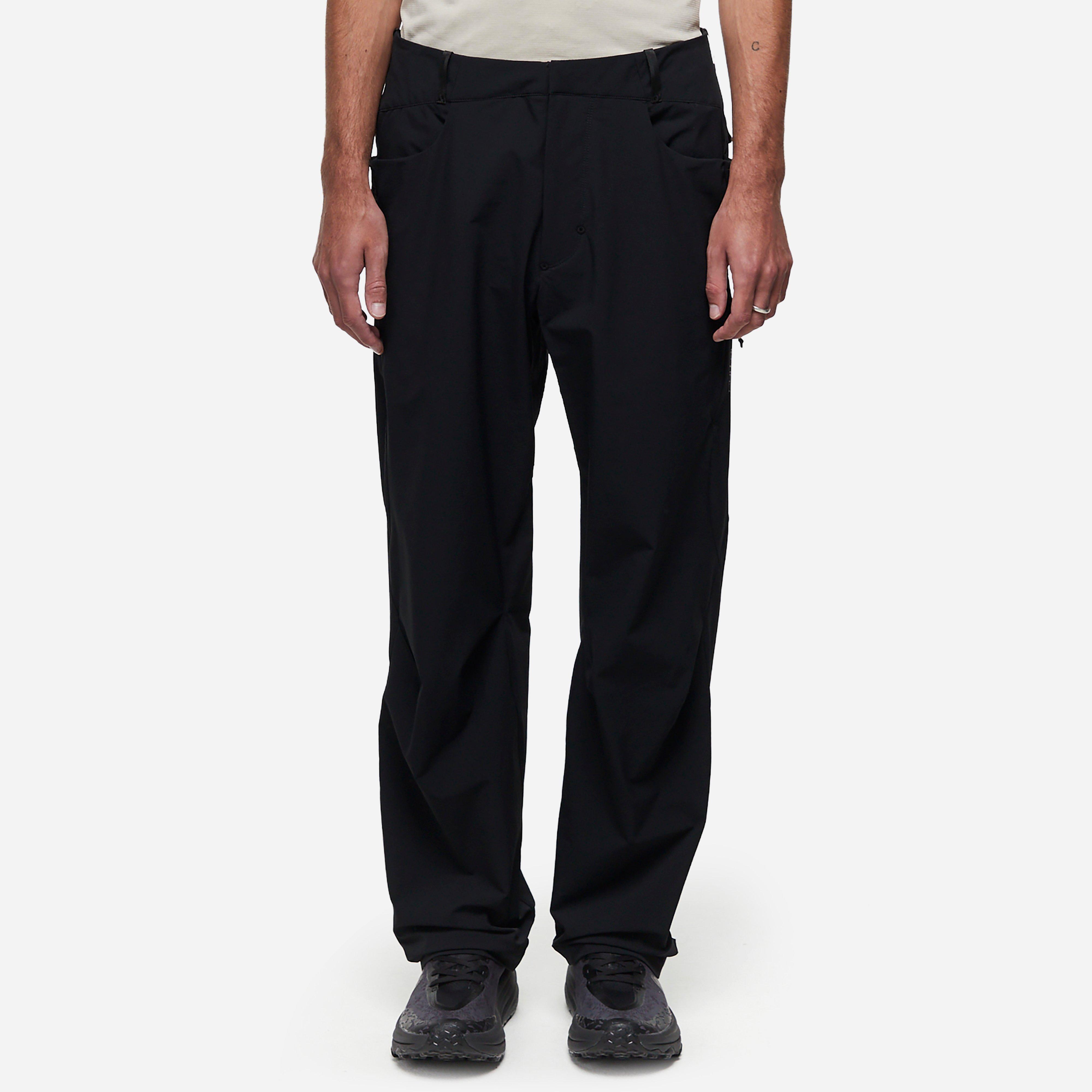 The Traka Softshell Pant is a multi-purpose garment designed for transitional movement. Black - 89% recycled nylon, 11% recycled polyester - Straight leg fit - Double weave stretch fabric - Concealed internal waist adjustment - Rear pockets - Top entry front pockets - Ergonomic pattern - Crotch gusset - Concealed zip cargo pocket - Calf and ankle snaps - Model is 5'11'' and wears a size medium.
