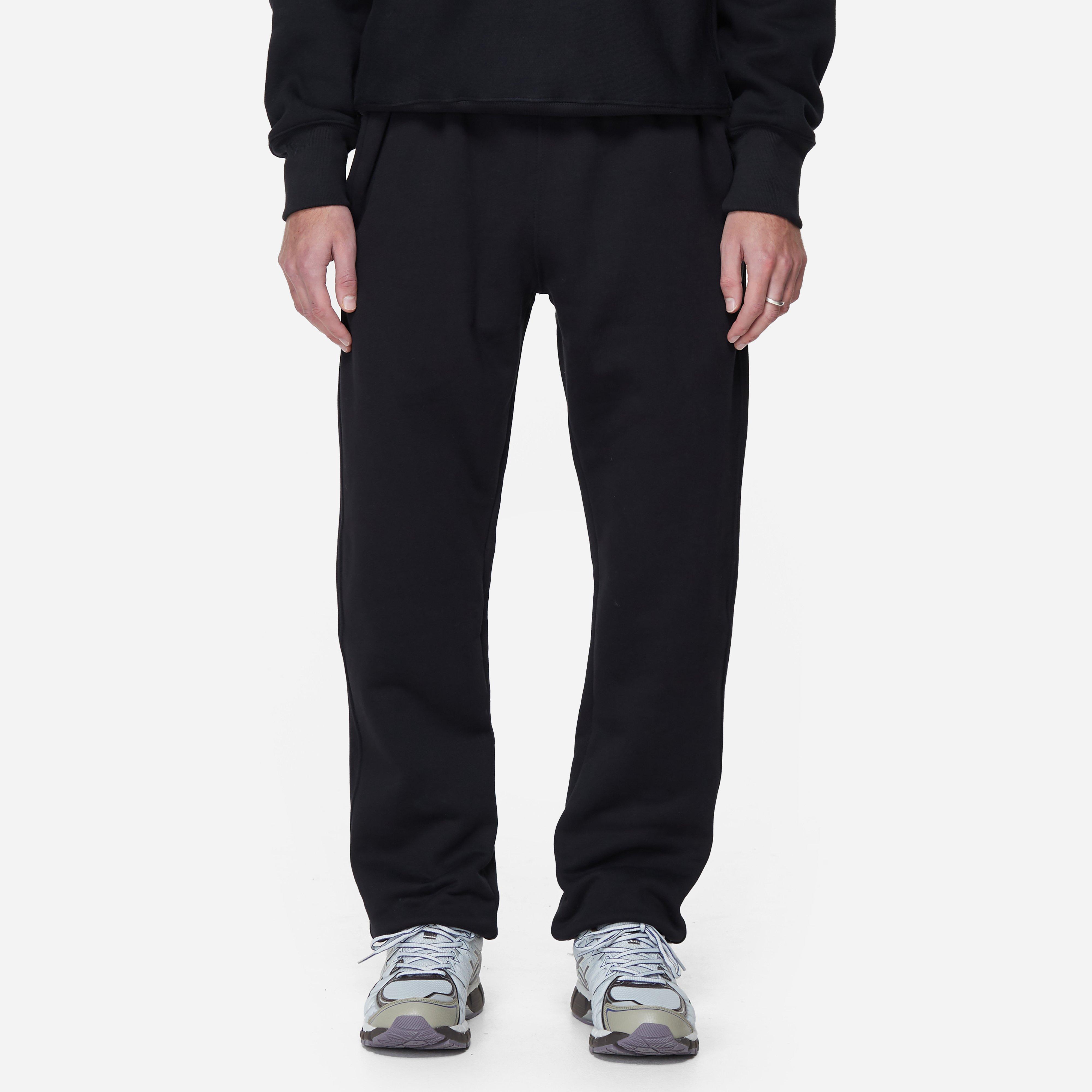 Black - 6oz GOTS organic cotton - Rubbed side panels - Bar tacked pocket - Round drawstring - Elasticated cuffs and waist - Model is 5'11" and wears a medium