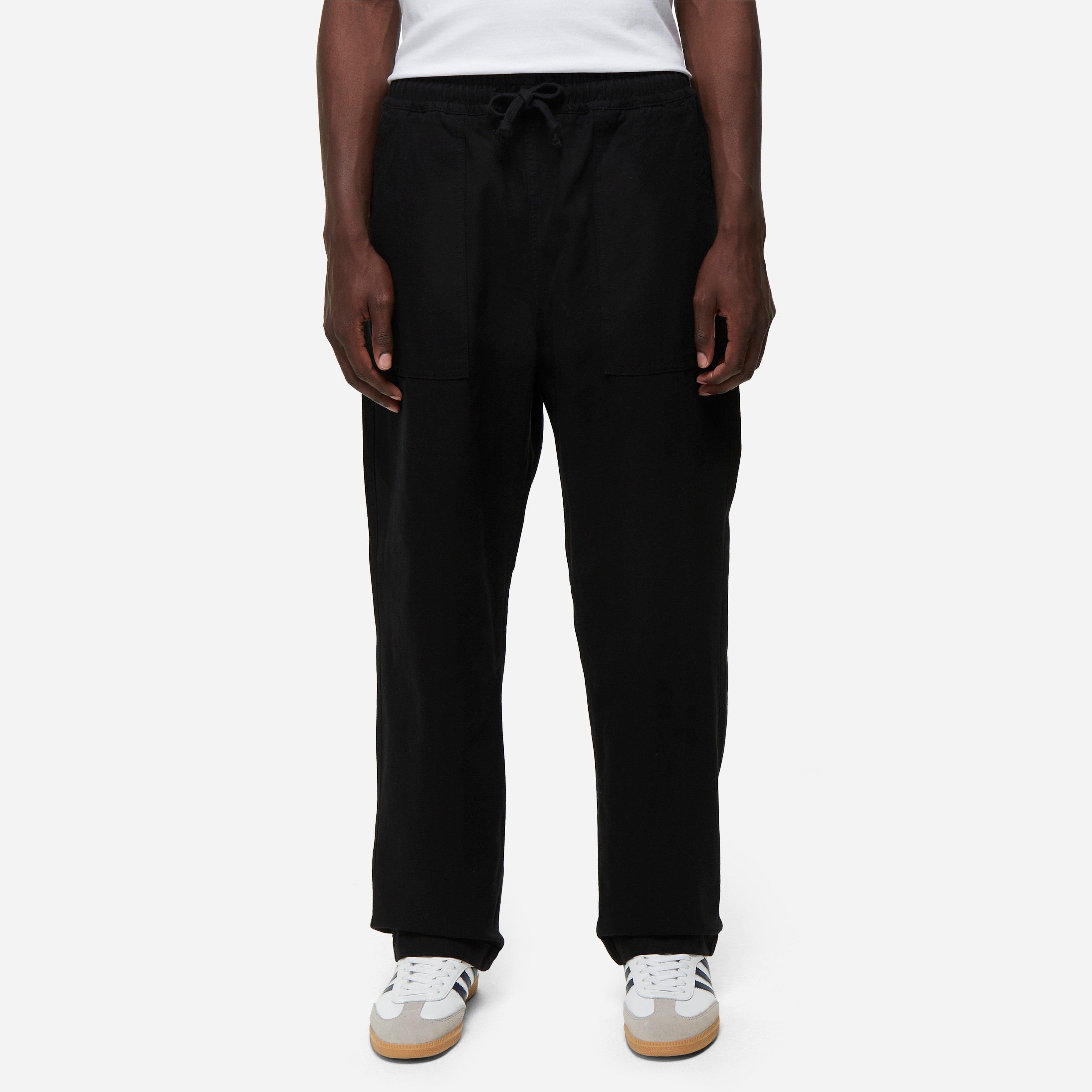 Black – 100% organic cotton – Relaxed fit – Straight cut – Canvas fabric – Adjustable waistband – Two raised fatigue pockets – Two rear patch pockets – Woven label – Model is 6’1’’ and wears a size medium.