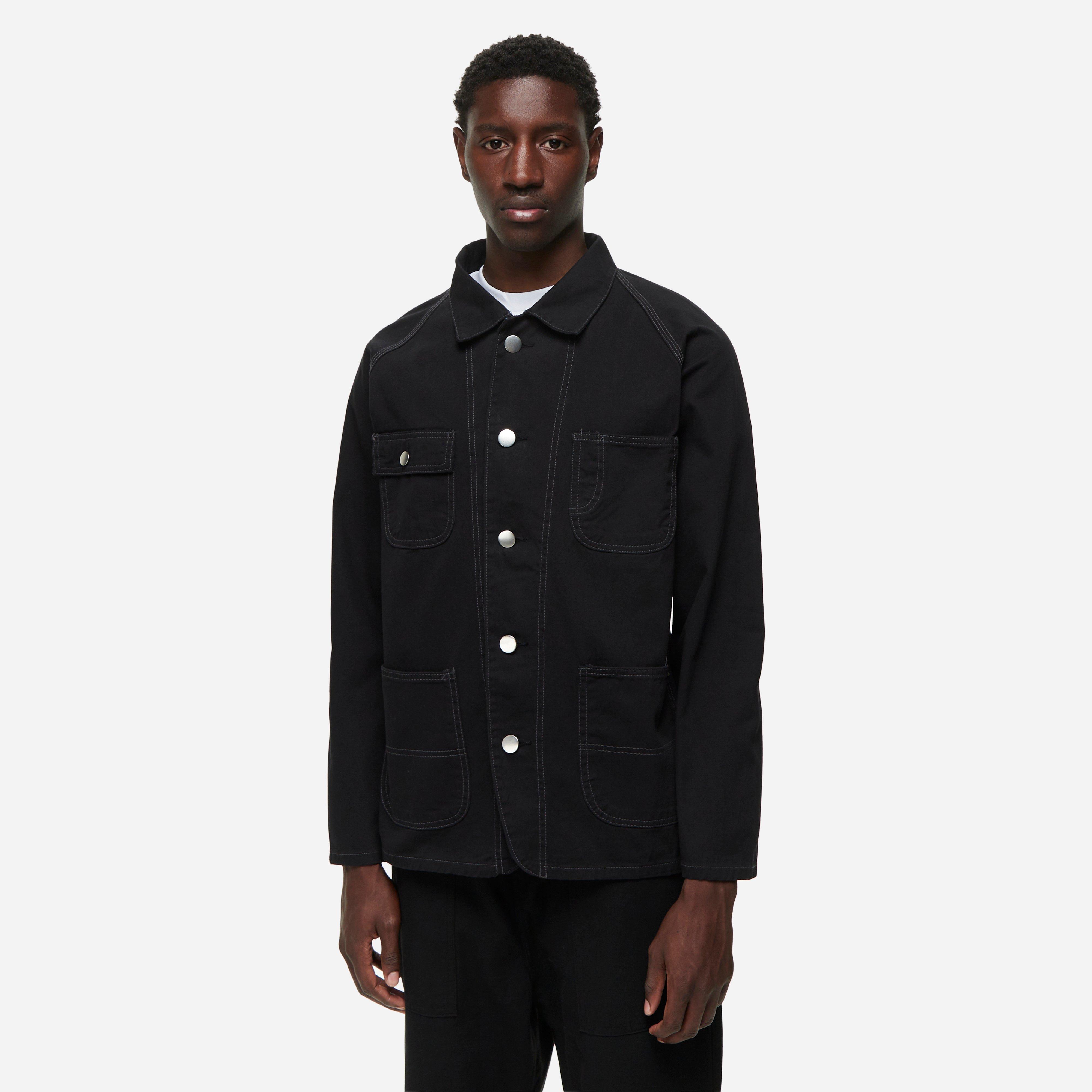 Black – 100% organic cotton – Regular fit – 8.5oz drill fabric – 300gsm – Triple stitched – Contrast seams – Raglan sleeves – 4 pocket construction – Button closures – Woven label – Model is 6’1’’ and wears a size medium.