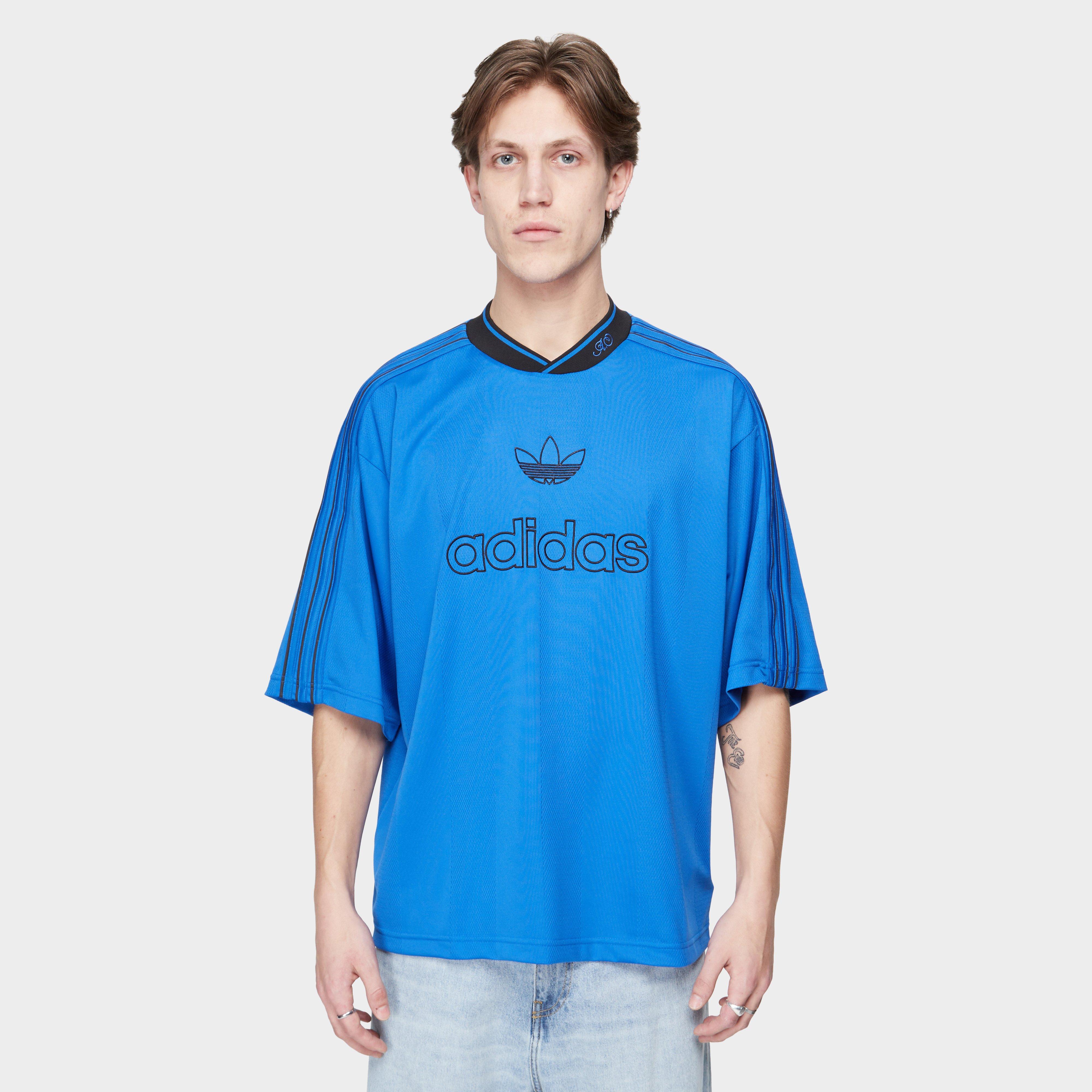 The Knit Jersey takes design notes from the label's Santiago cutline with archive-inspired graphics from 1994. Blue - 100% recycled polyester - Oversized fit - Three stripes - Model is 6'2.5" and wears a size medium