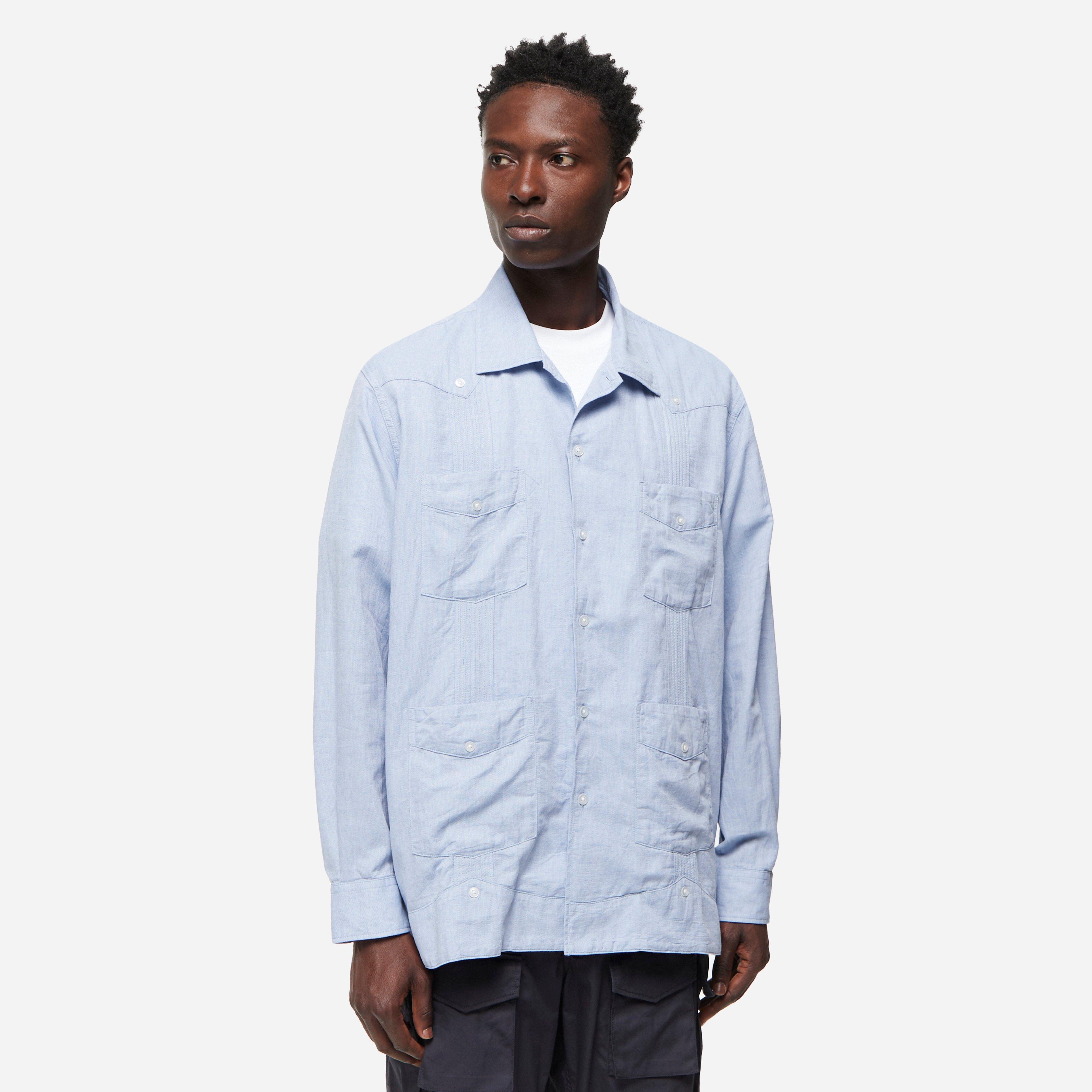 Engineered Garments' Guayabera Shirt is made in the USA from a lightweight cotton linen and accented with considered touches like vertical pleats, pin tucks and front pockets - all pointing towards Daiki Suzuki's intricate design language.