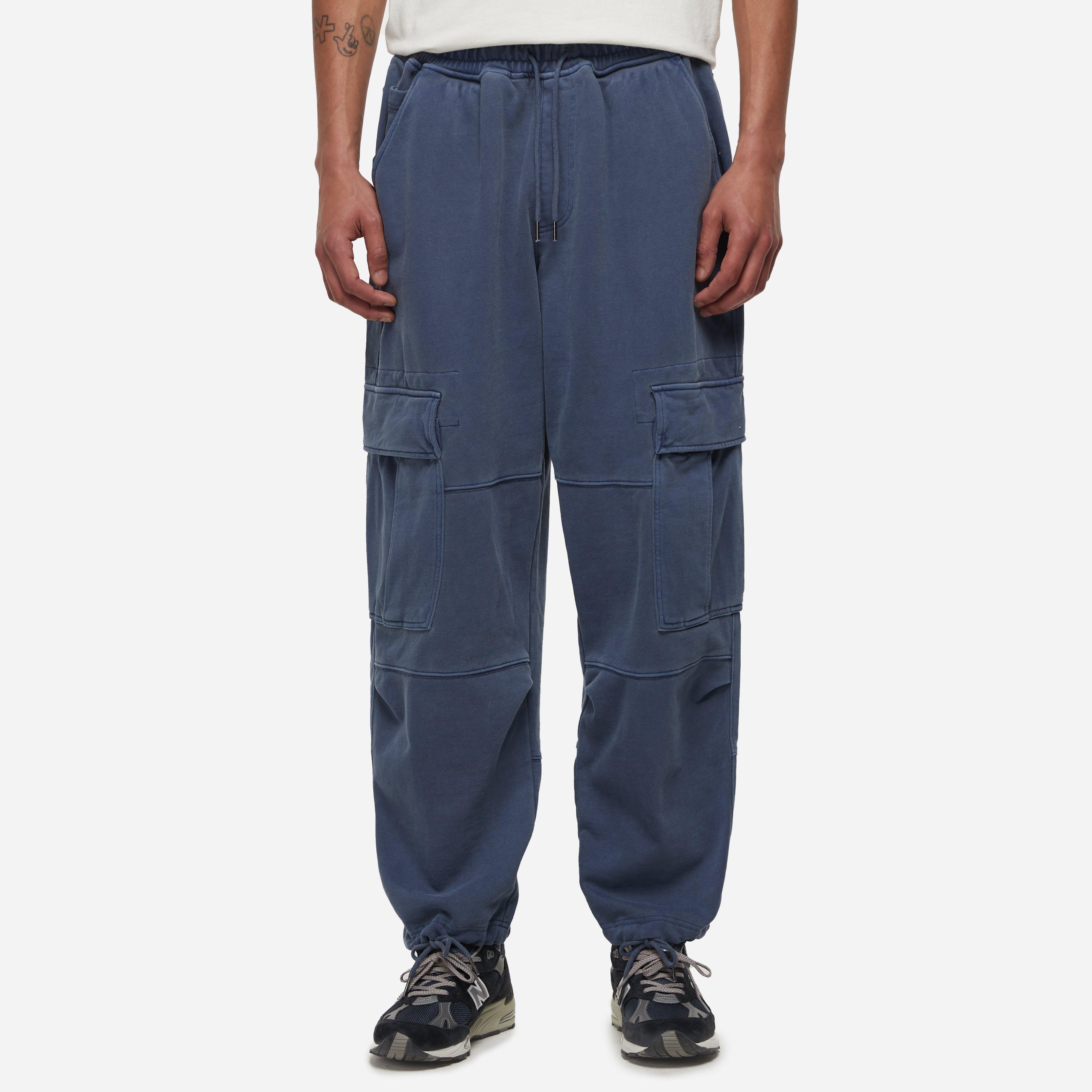 Blue - 100% cotton - Elastic drawstring waist - Drawstring hems - Cargo leg pockets - Pigment dyed - Relaxed fit, waist runs small - We suggest sizing up - Model is 6'4" and wears a size medium - Waist size guide (in.) - M=29-30, L=31-32, XL=33=34
