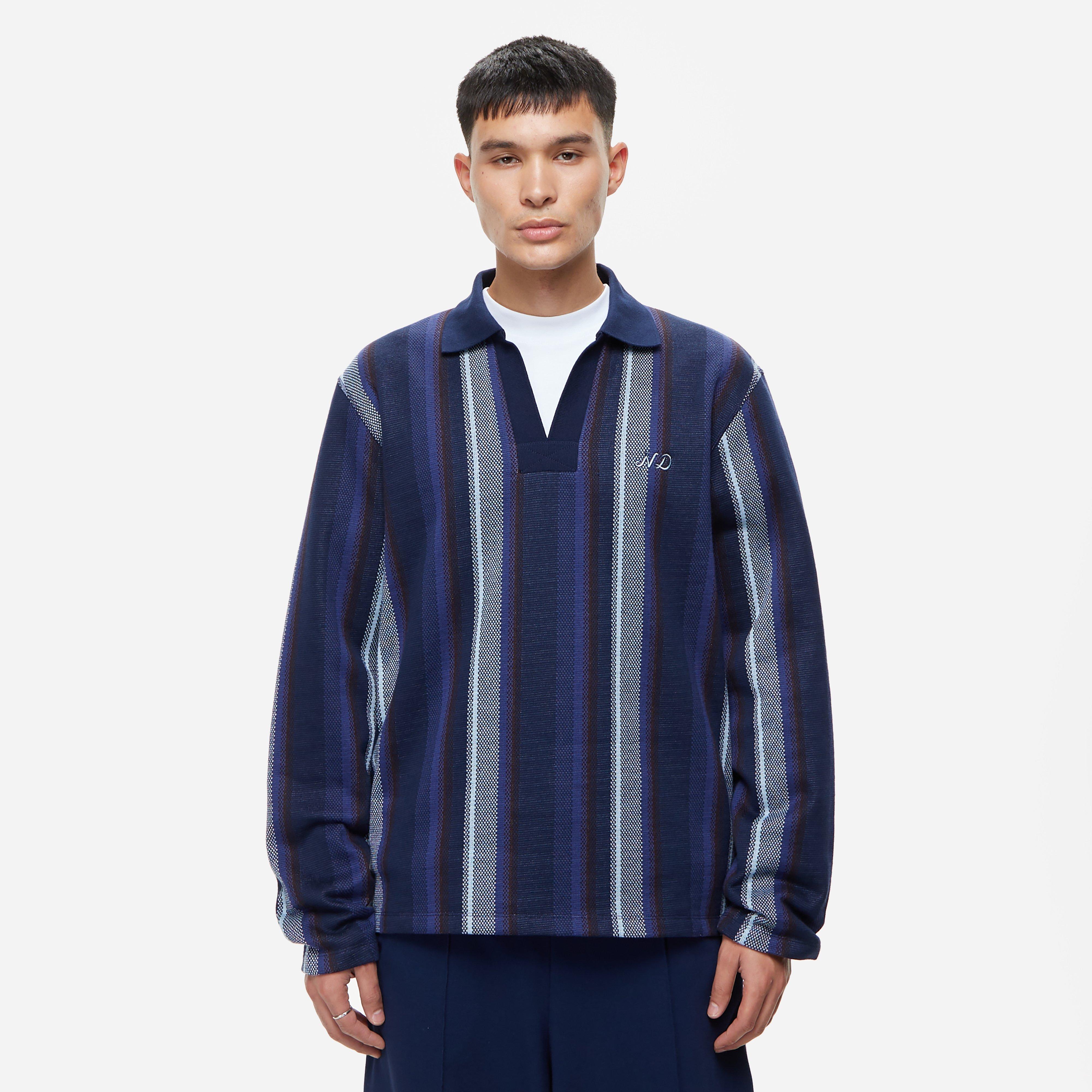 Nicholas Daley's Long Sleeve Stripe Polo Shirt is crafted from a midweight knit jersey with a striped design that's Made in Portugal.