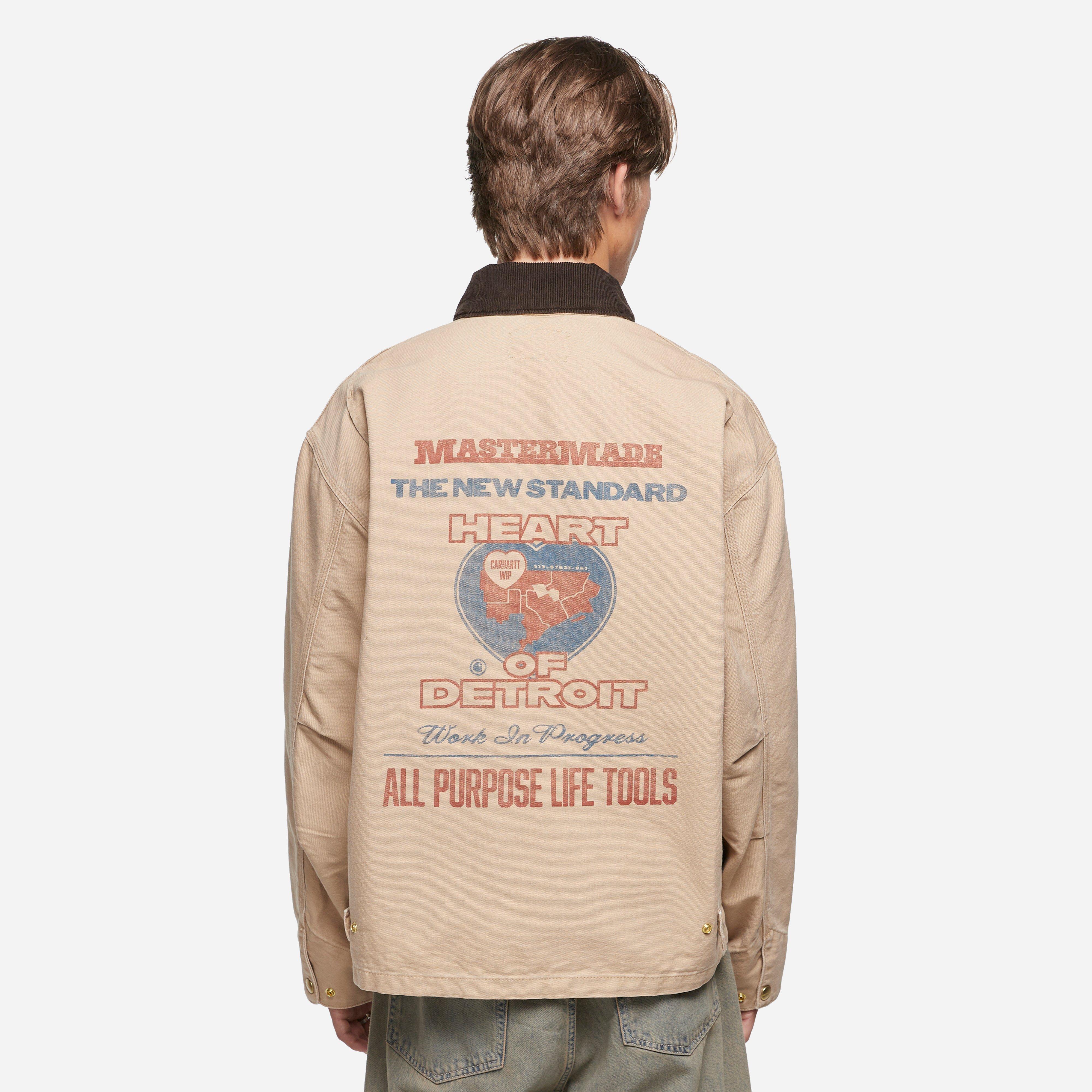 Brown - 100% Organic Cotton 'Dearborn' Canvas - 12 oz - Loose fit - Unlined - Triple stitched - Corduroy collar - Graphic prints - Hidden zip - Square label - Model is 6'2.5" and wears a size medium.