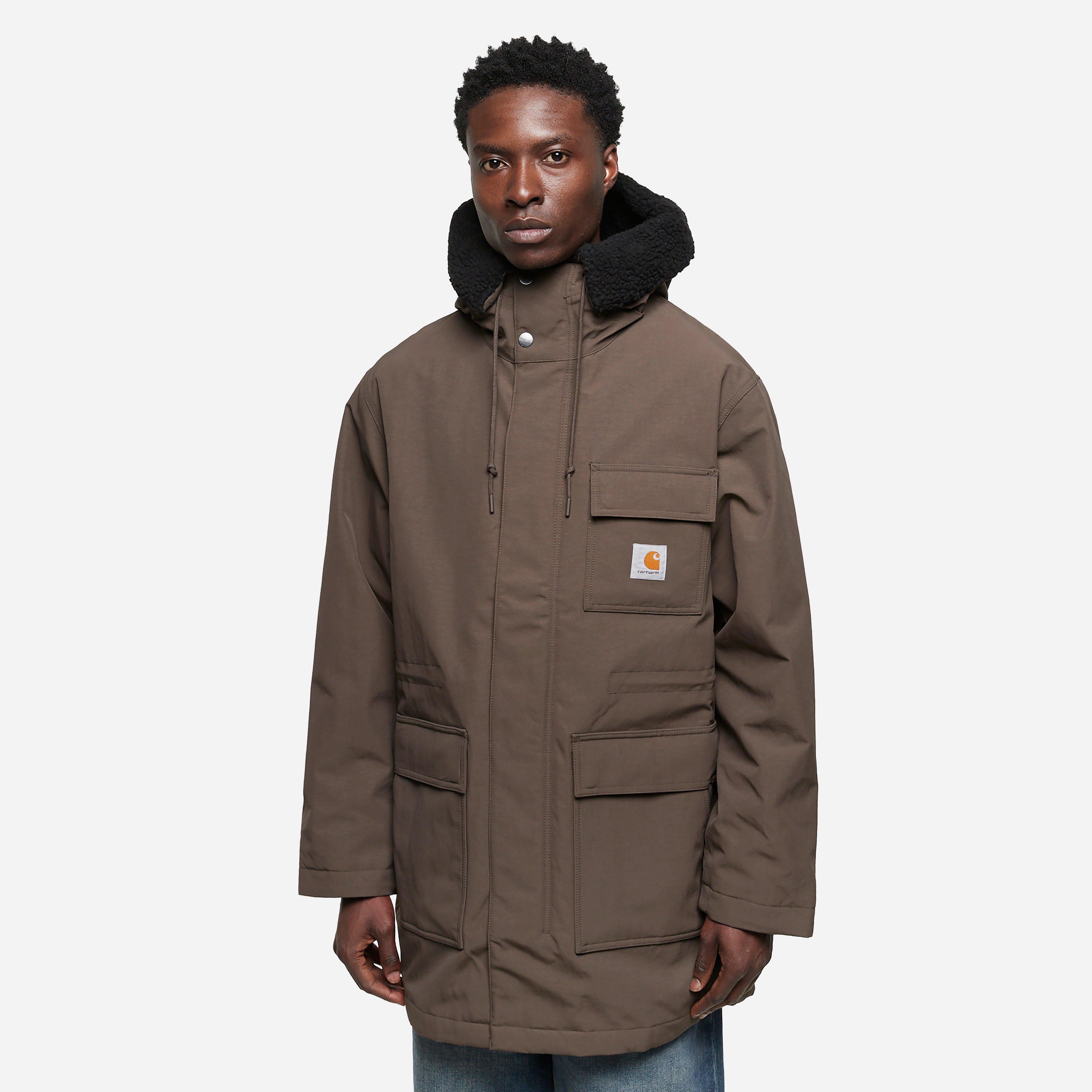 Brown - 100% nylon - Water-repellent - Padded - Diamond-quilt lined - Pile-lined hood - Adjustable cuffs and bottom band - Chest pocket - Two lower front pockets - Square Label - Model is 6'2'' and wears a size medium.