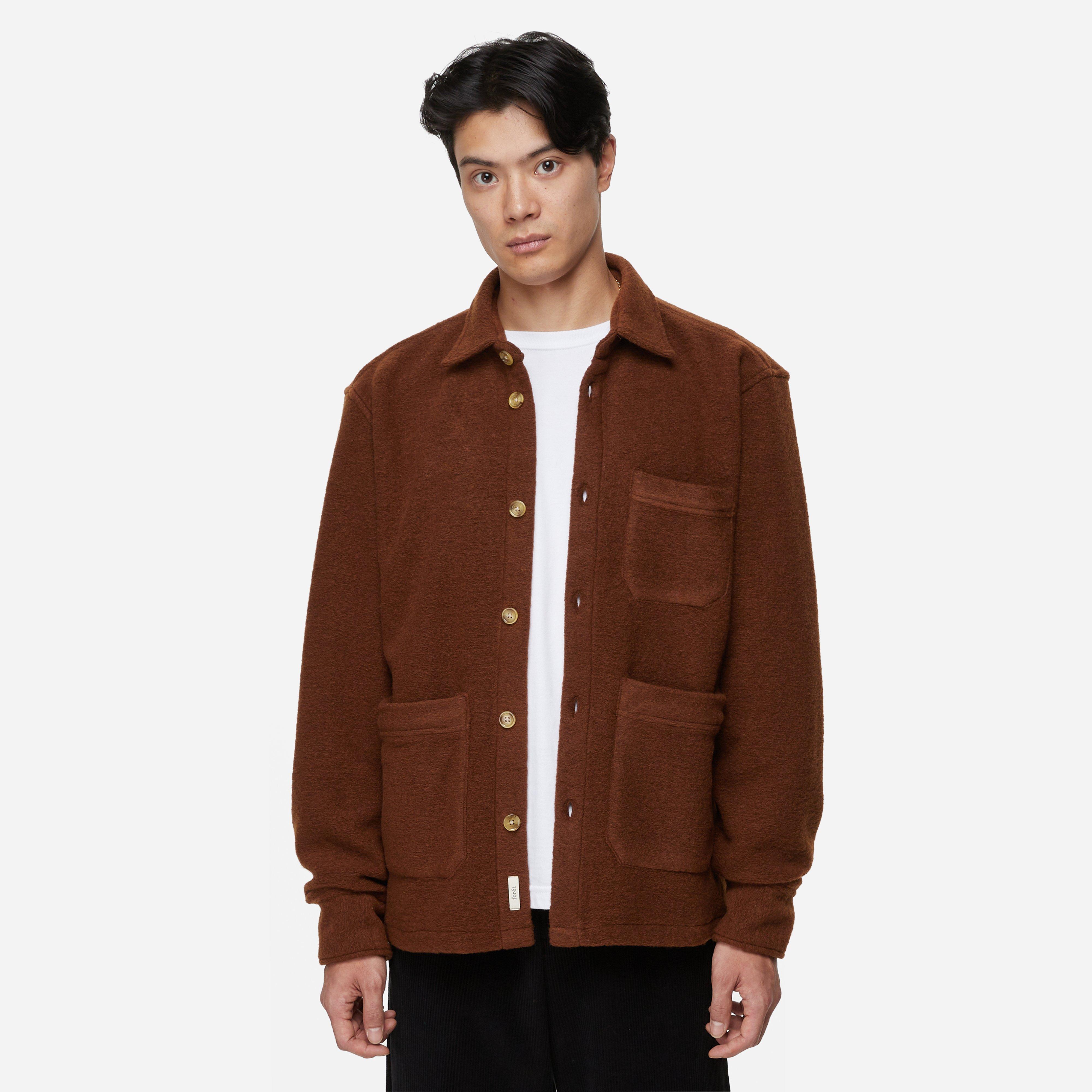 Brown - 66% polyester, 34% wool - Three front pockets - Woven label - Button cuffs - Regular fit, take your normal size - Model is 6'1" and wears a size medium.