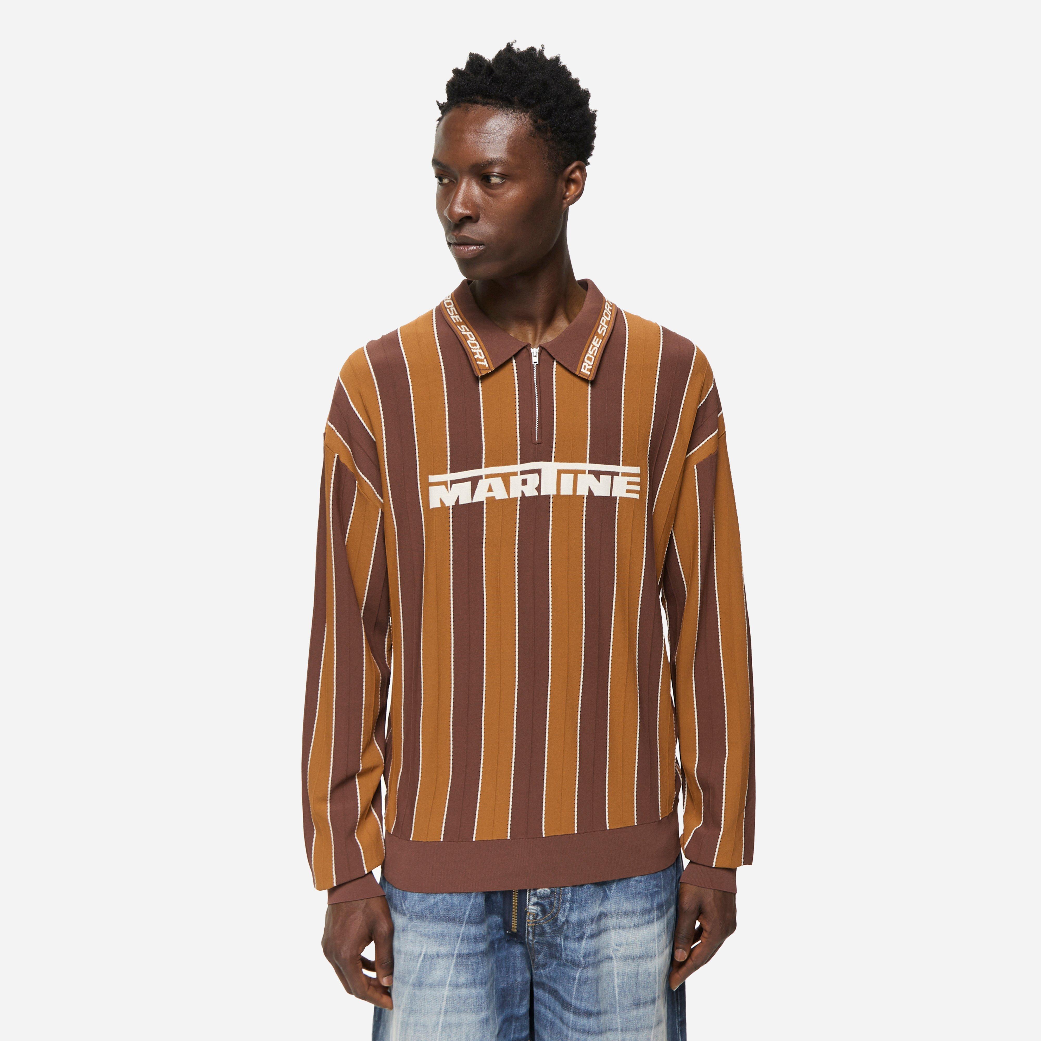 Flash-forward to the current day and she is a critically acclaimed, internationally renowned designer who channels strong underground influences through her eclectic collections. Brown – 79% viscose, 21% polyester – Regular fit – 1/4 zip collar – Stripe pattern – Contrast piping – Ribbed trims – Knit logo – Model is 6’2’’ and wears a size medium.