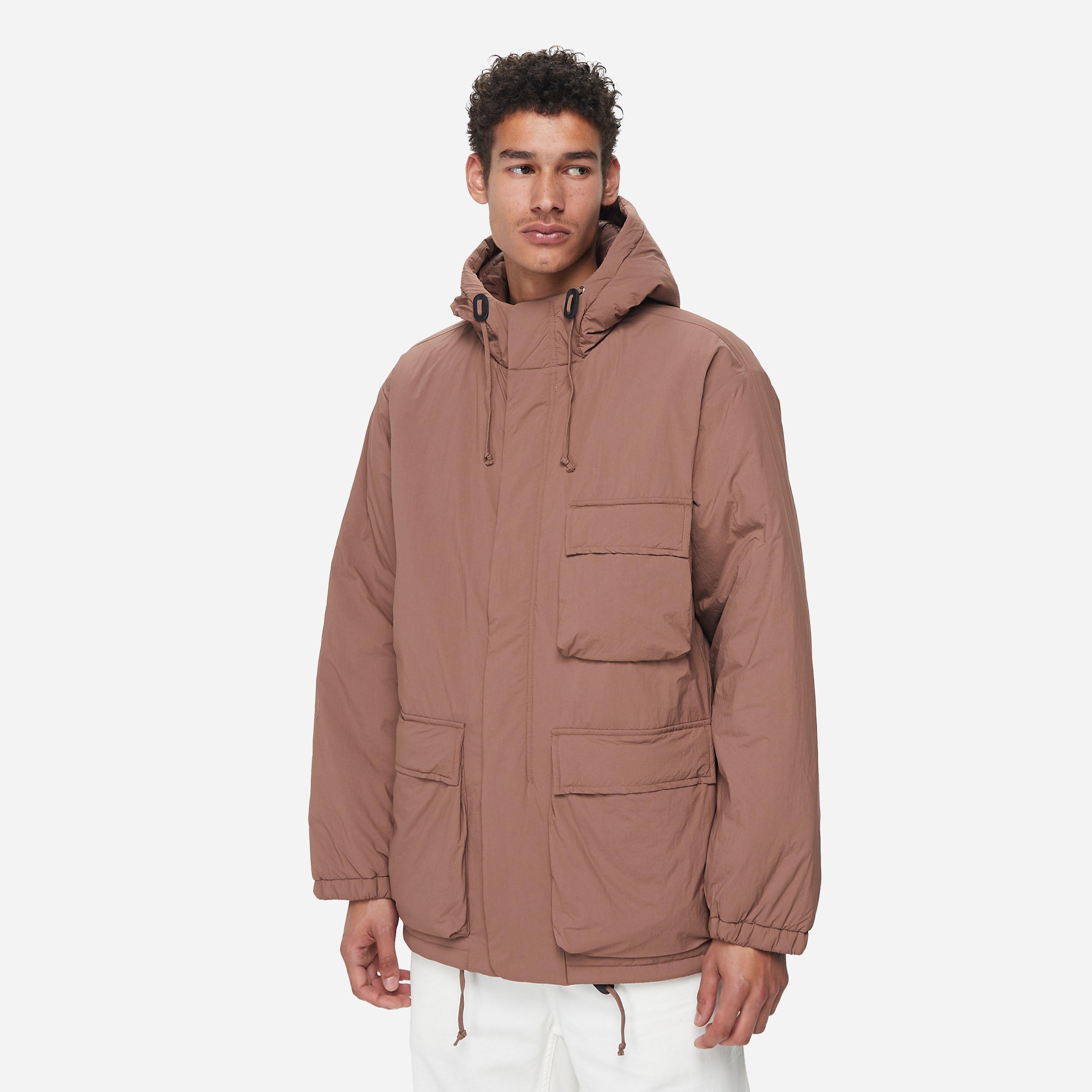 The British label looked to a South Korean mill to find an excellent outdoor water-resistant fabric, which is combined with a cosy down fill. Brown - 100% recycled polyester - Padding: 100% polyester - Drawcord hood - 3 front flap pockets - Elastic cuffs - Regular fit, take your normal size - Model is 6'4" and wears a size medium.