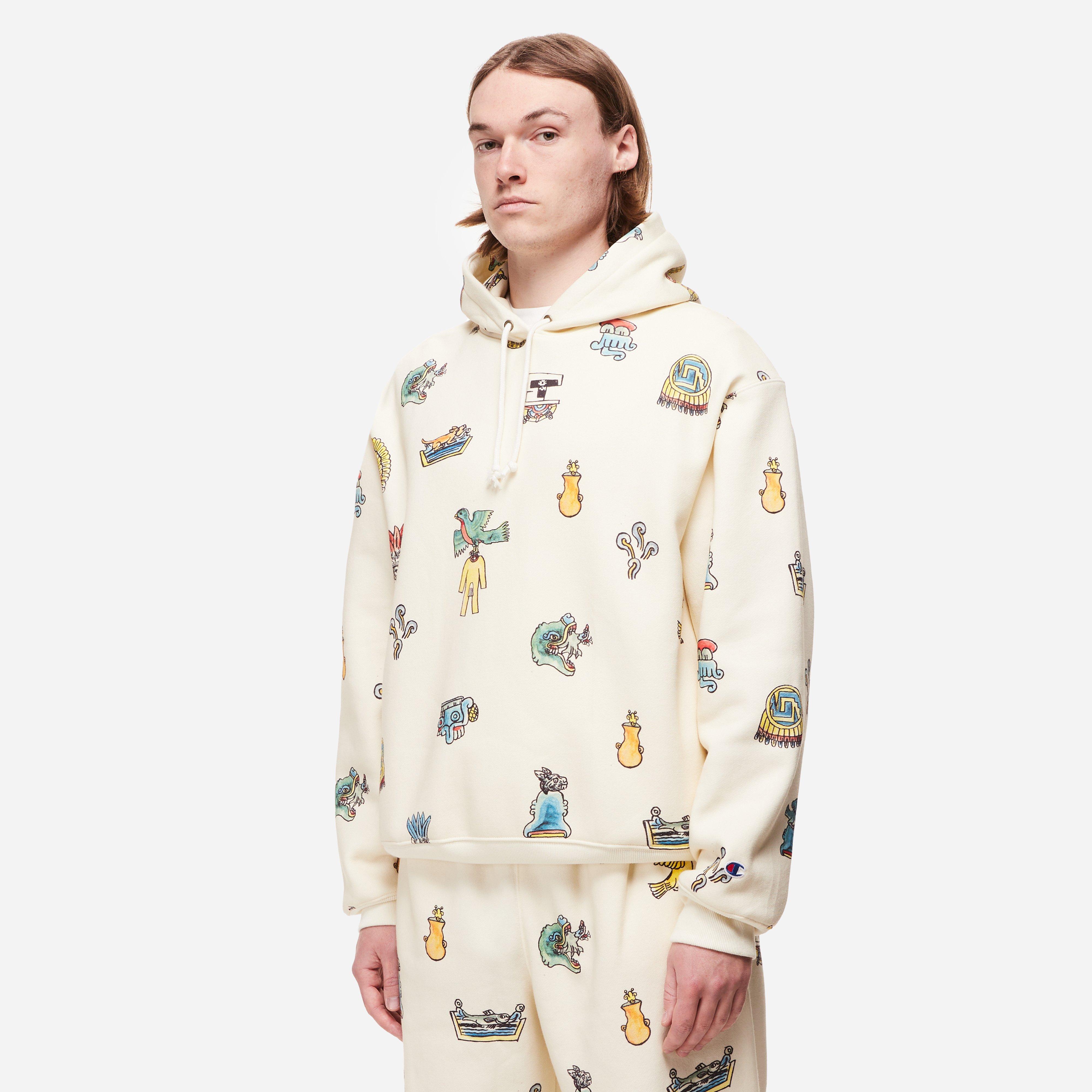 The collection takes inspiration from the intricate fabrics and craftsmanship of Ecuador’s Quechua people and the Incan traditions of Peru. Nodding to culture, the collection honours indigenous techniques passed down through generations. Multi - 82% cotton, 18% polyester - All over print inspired by ancient Latin American codex imagery - Side seam pockets - Drawstring hood.
