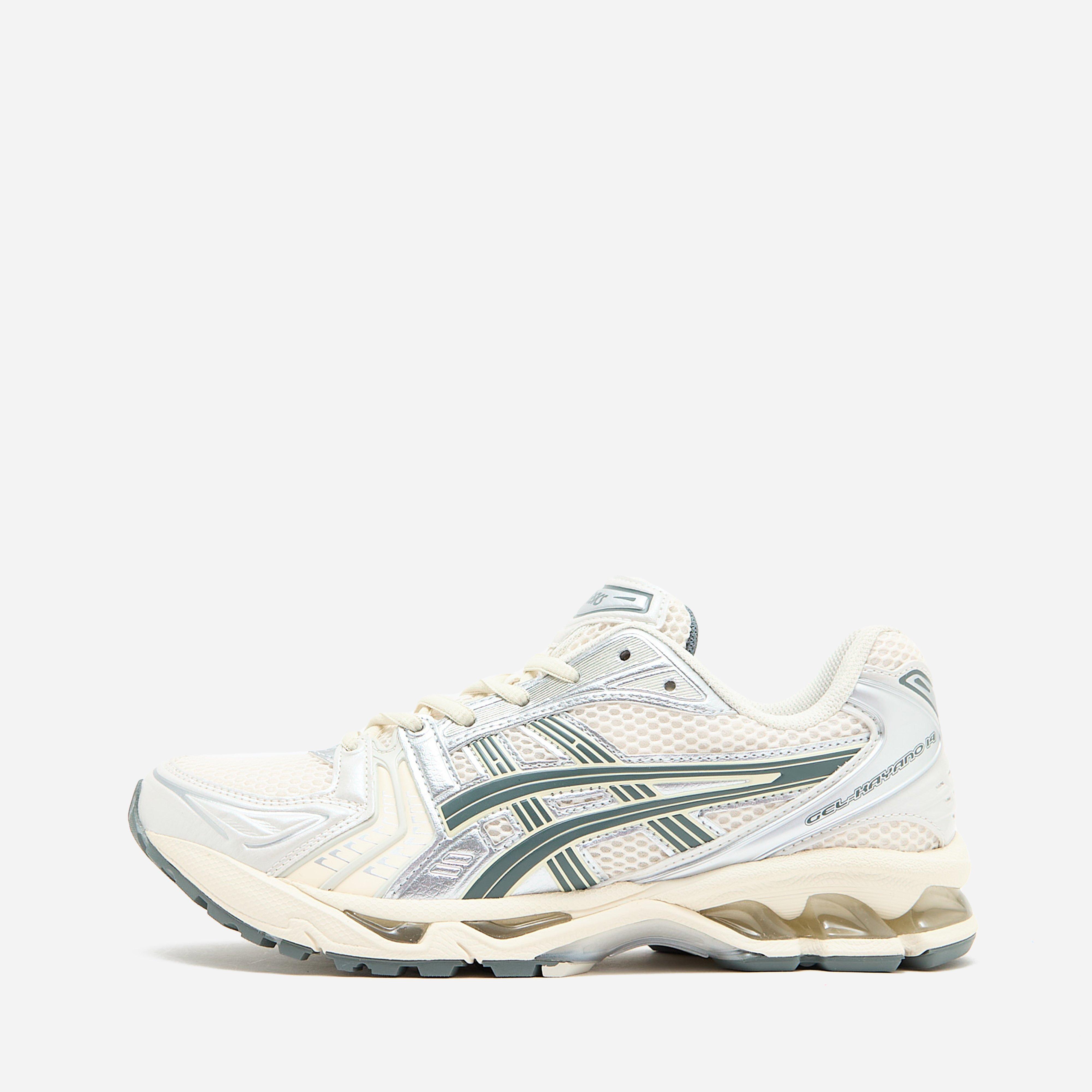 Originally designed as a runner, the GEL-KAYANO 14 has since crossed over into a more lifestyle apt realm. White - Textile & synthetic upper, synthetic sole - Speed lace system - Porous mesh - Curvilinear overlays - GEL pod cushioning - Style code: 1201A019-200