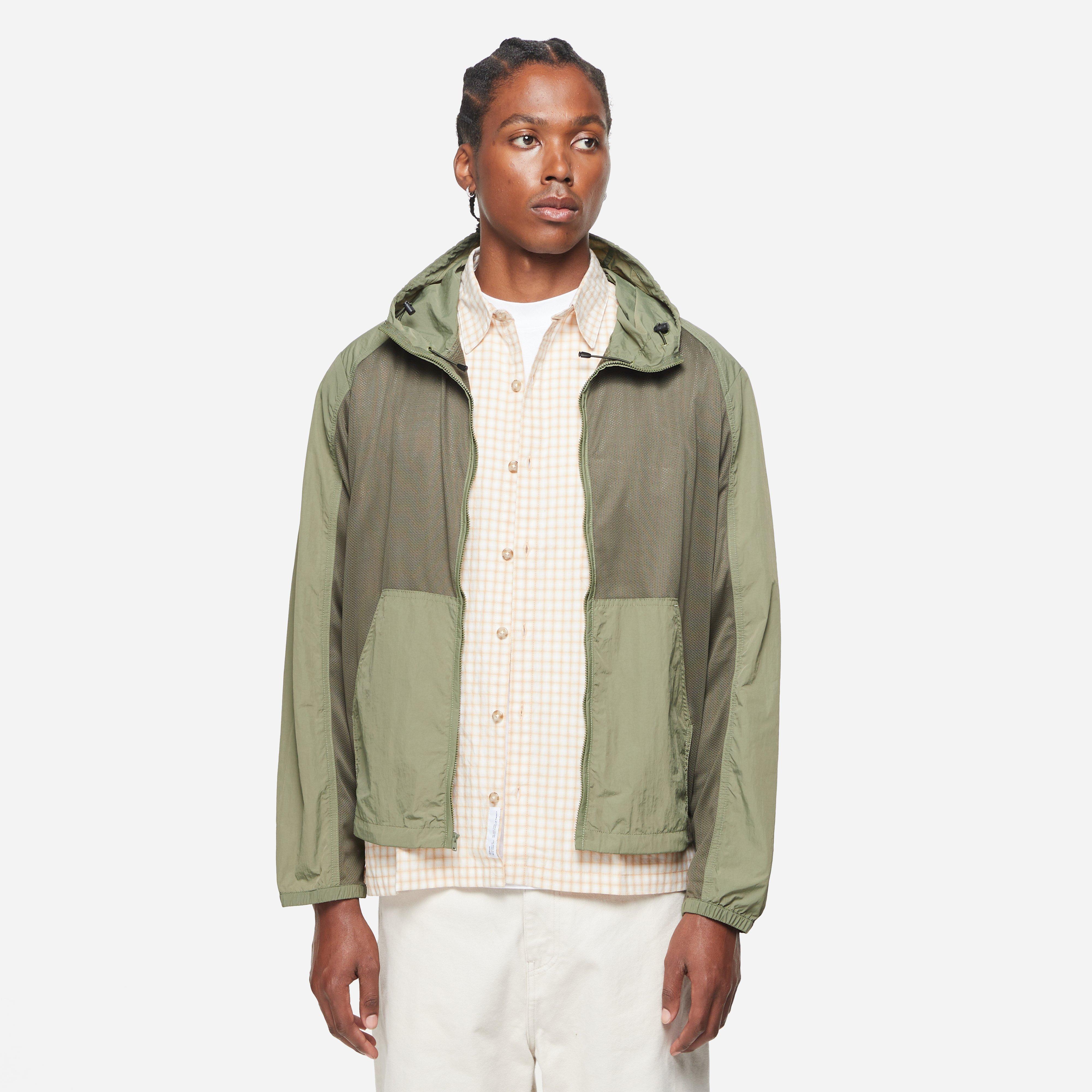 The Breathe Jacket is a lightweight, mesh-panelled layer. Green – 100% nylon – Relaxed fit – Water-repellent qualities – Split kangaroo pocket – Model is 6’2’’ and wears a size medium.