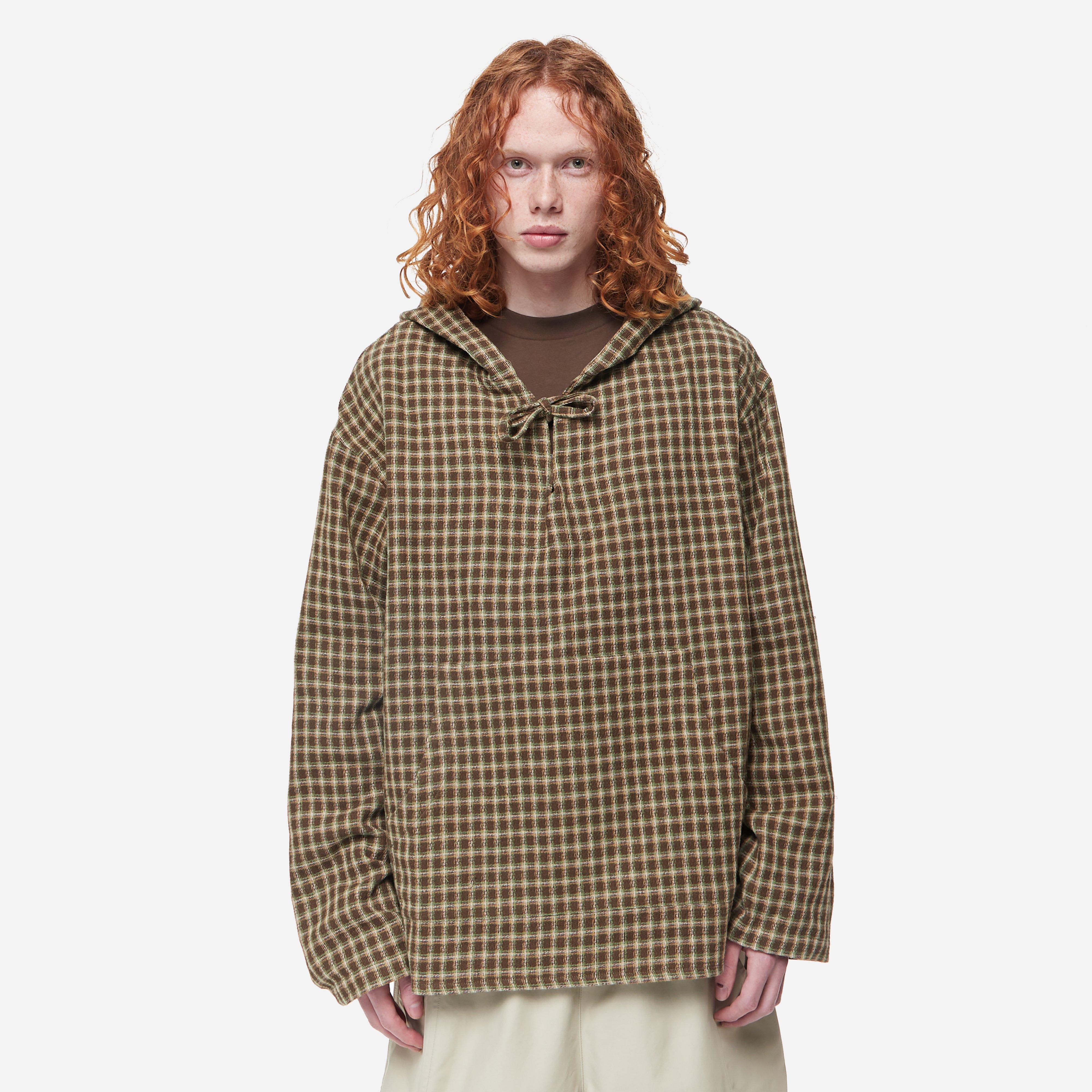 Nicolas Dayley's Hooded Pullover arrives as a part of the Sacred Drums SS25 collection and is crafted from Sonic Jacquard in a brown check with a striking sound wave pattern, inspired by the rhythmic energy of Jamaican Nyabinghi drumming traditions.