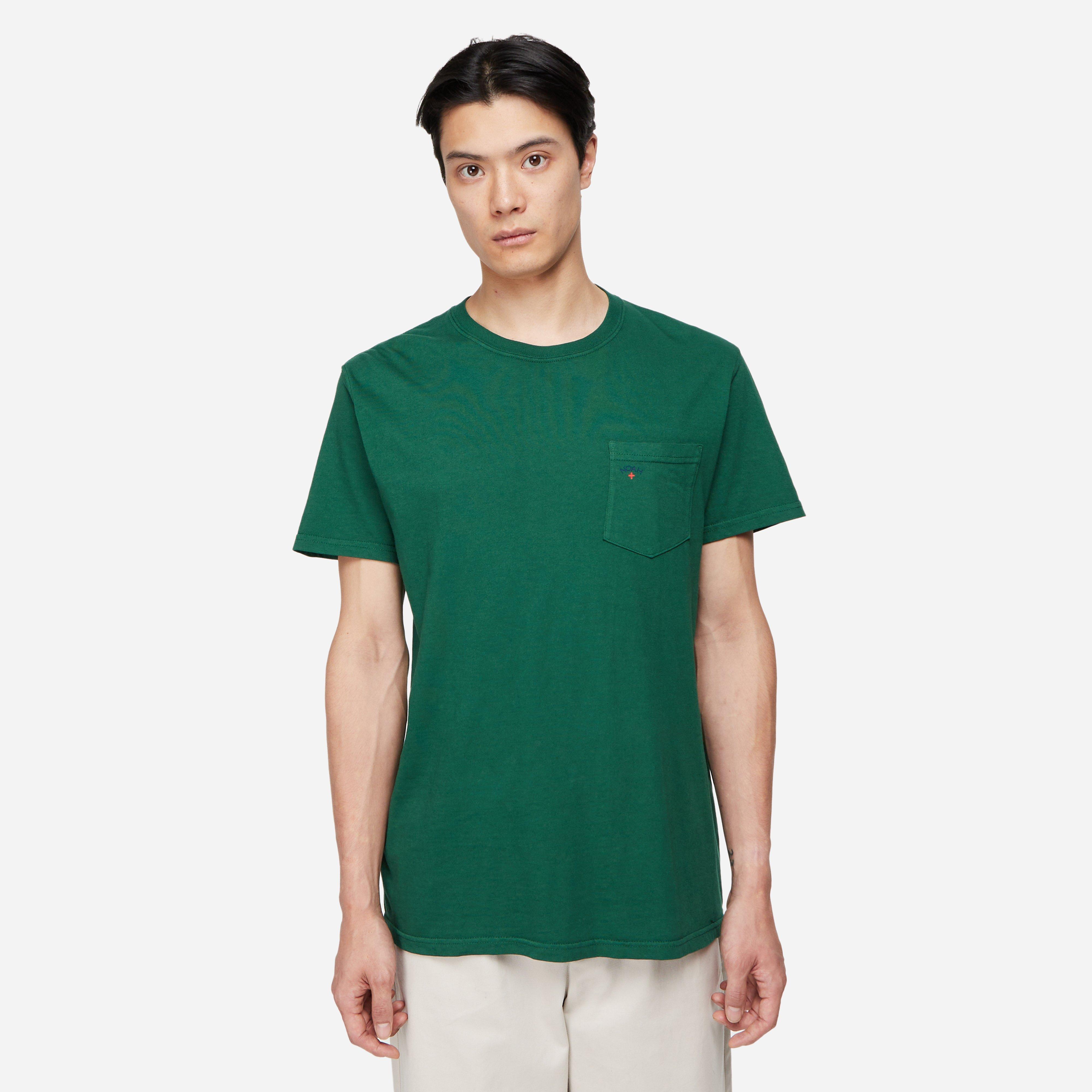 The Pocket T-Shirt is a core item offered in multiple seasonal colors. The T-Shirt is now made in the USA and undergoes a dye and wash process for softness Green - 100% cotton - Chest pocket - Dyed and washed - Printed branding - Made in the USA - Regular fit, take your normal size.