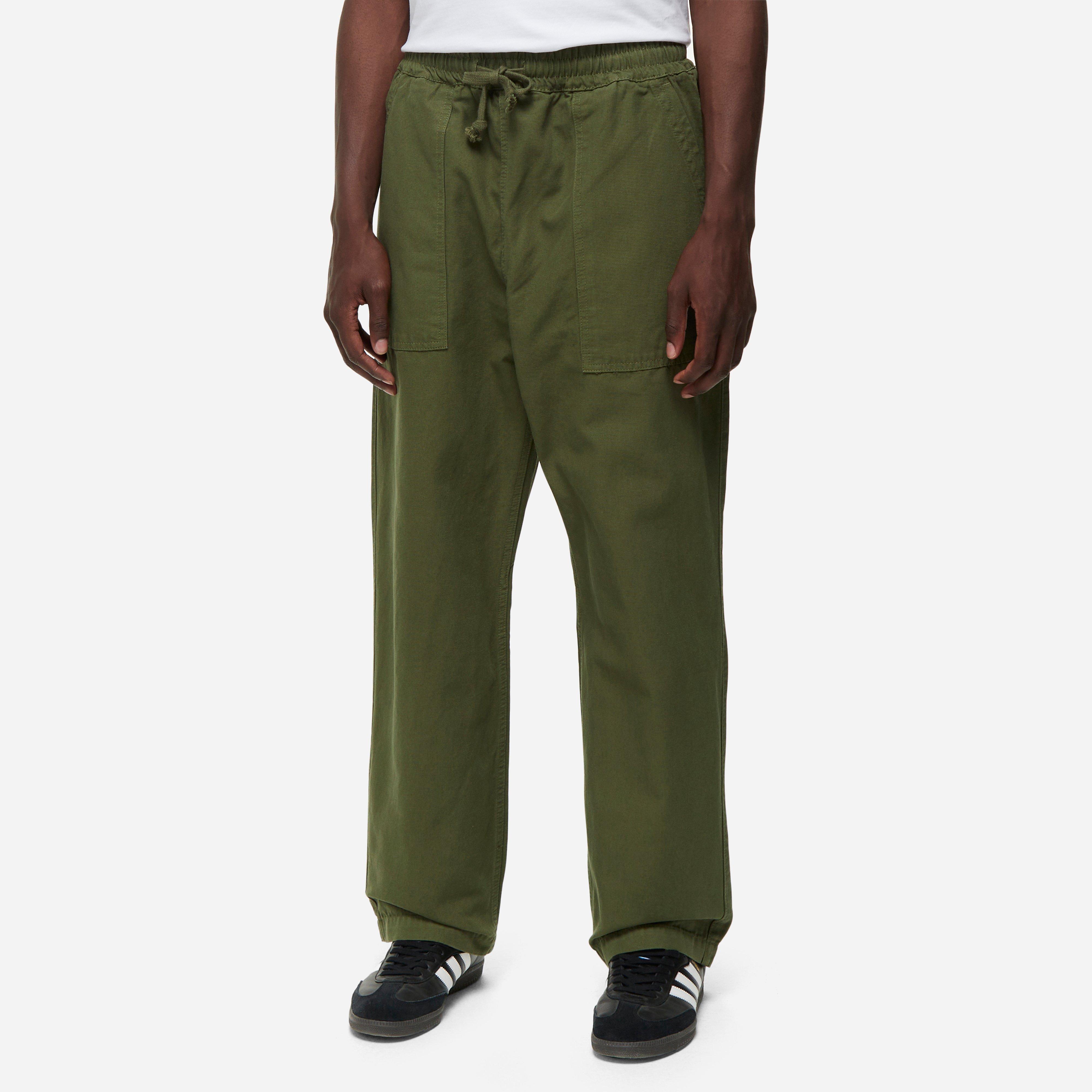 Olive – 100% organic cotton – Relaxed fit – Straight cut – Canvas fabric – Adjustable waistband – Two raised fatigue pockets – Two rear patch pockets – Woven label – Model is 6’1’’ and wears a size medium.