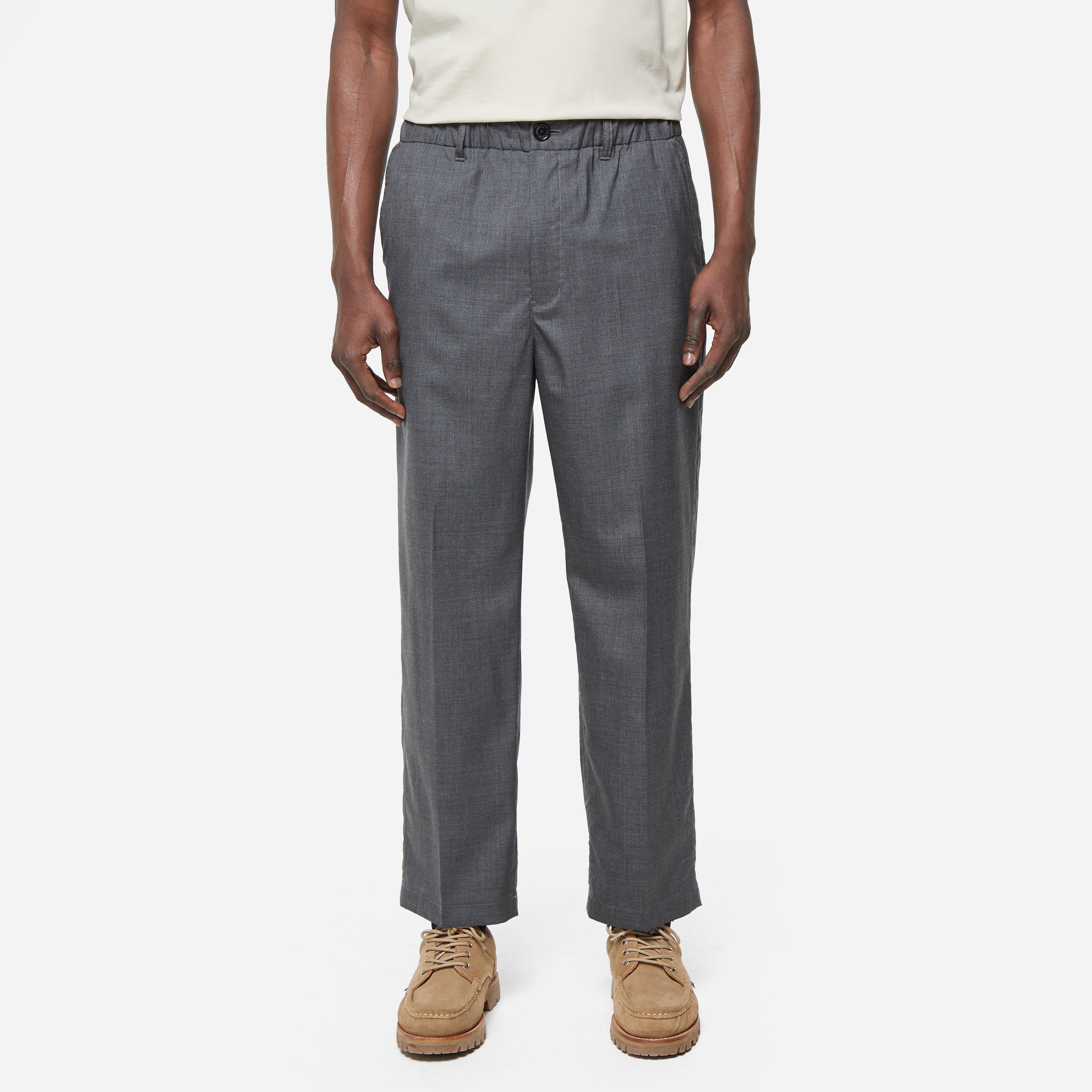 For SS25 Farah Japan, a Japanese offshoot of the original, presents a fluid collection with contemporary looks and considered craft at the forefront. Borrowing details from outdoor clothing, classic collegiate sportswear, formal workwear and casual clothing. Grey - 100% wool - Central pleats - Patch pockets - Straight fit - Model is 6'2" and wears a size medium