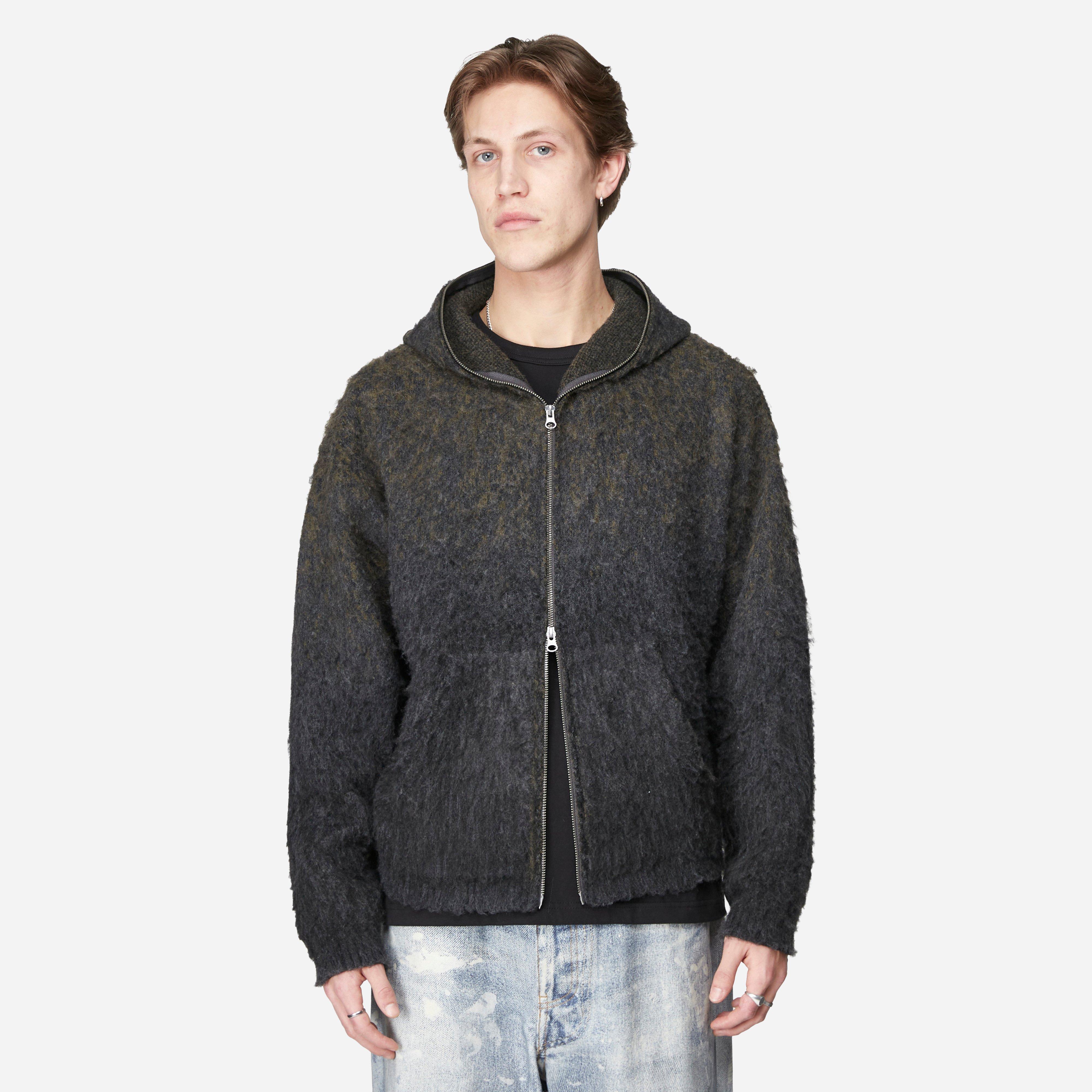 Grey - 92% polyester, 6% wool, 2% elastane - Set in sleeves - Relaxed fit - 2 way zip - One piece hood - Model is 6'2.5" and wears a size medium