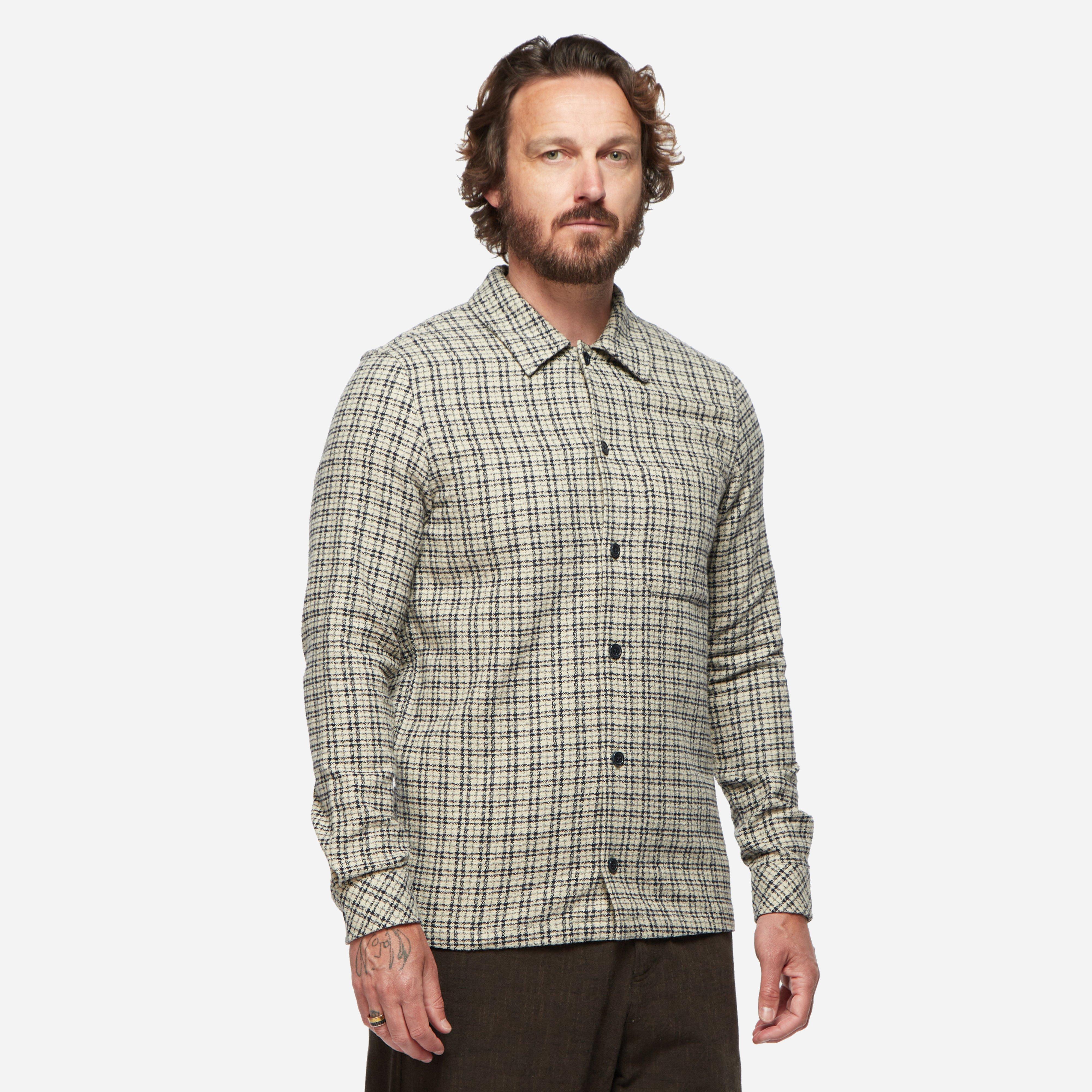 The fabric used is a premium organic cotton with a woven check pattern. Grey - 100% organic cotton - Button cuffs - Chest pocket - Back neck yoke - Regular fit, take your normal size - Model is 6'1" and wears a size medium.