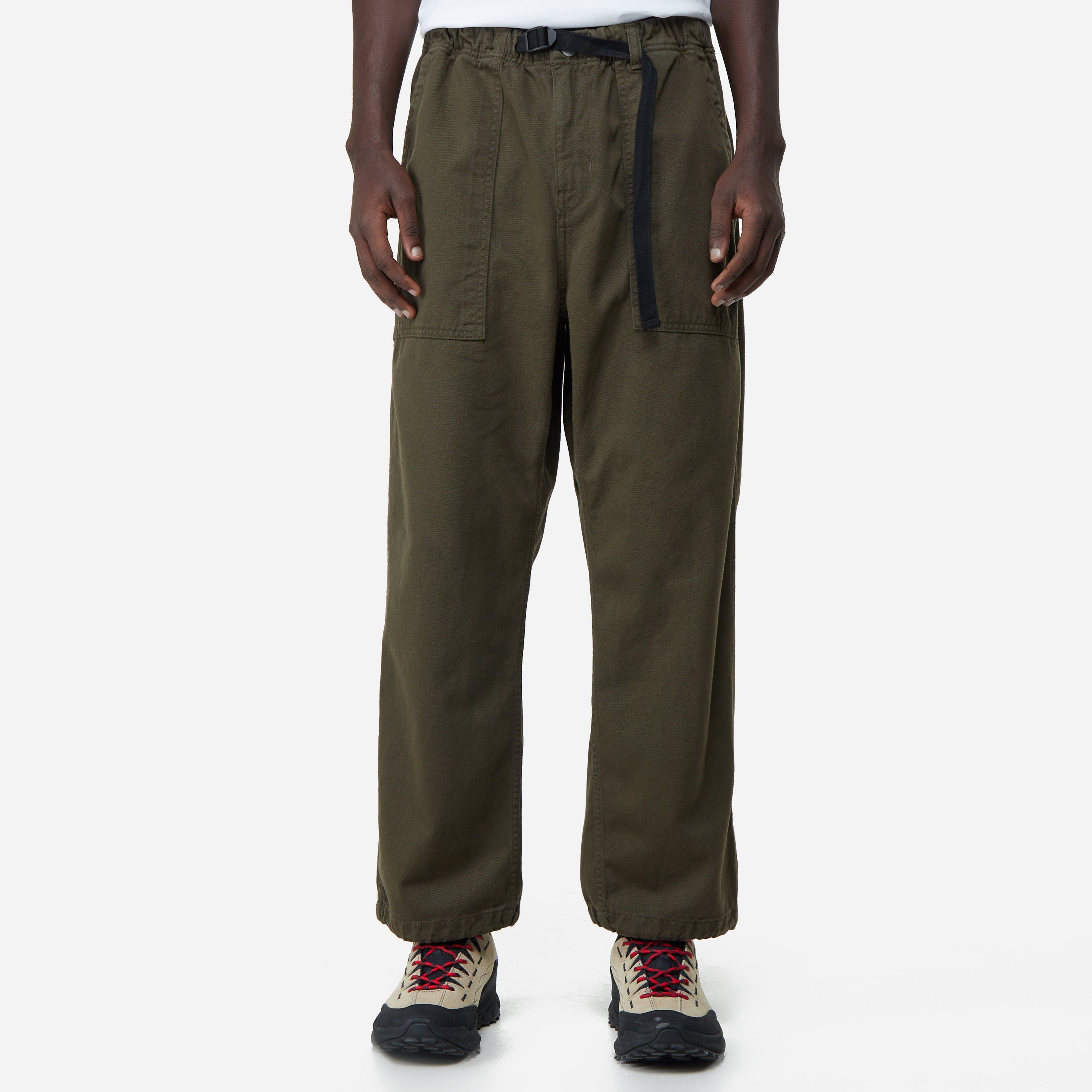 The pant is cut to a relaxed fit. Green - 100% cotton - Zip fly - Relaxed fit - Garment dyed - Elastic waist -Adjustable belt - Adjustable leg openings - Back pockets - Square label - Model is 6'1" and wears a size 32 - Waist size guide (in.) - 30=32, 32=34, 34=36, 36=38.