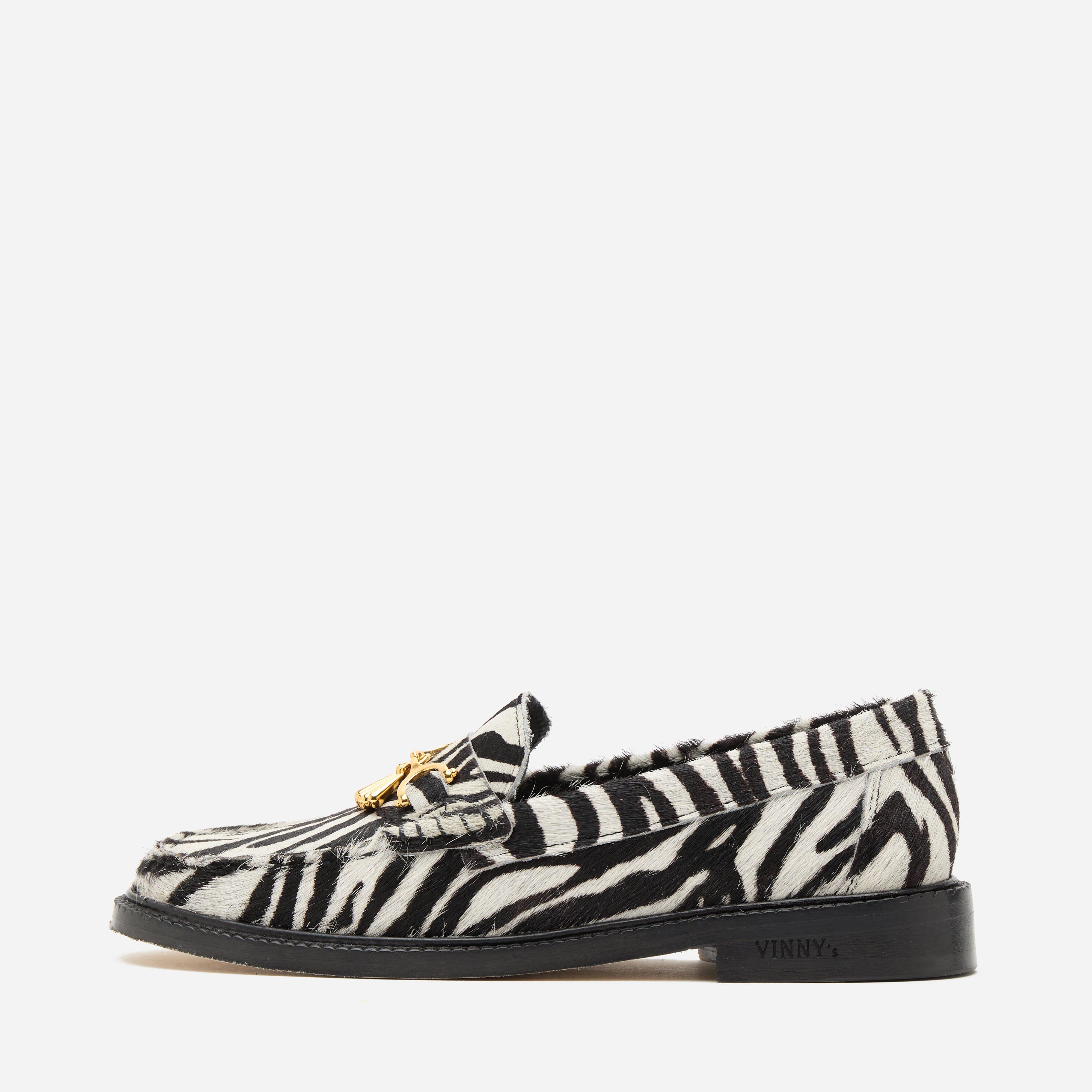 Each pair of VINNY's shoes are made in a small factory in Portugal with high-quality materials, each handcrafted in understated colours and classic silhouettes, ensuring years upon years of wear. The Snaffle Loafer is a classic moccasin style finished with a seasonal trim decor and gold snaffle. Black - Pony hair upper, rubber sole - Gold snaffle - Calfskin lining - Engraved logo - Handmade in Portugal - Regular fit, take your normal size.
