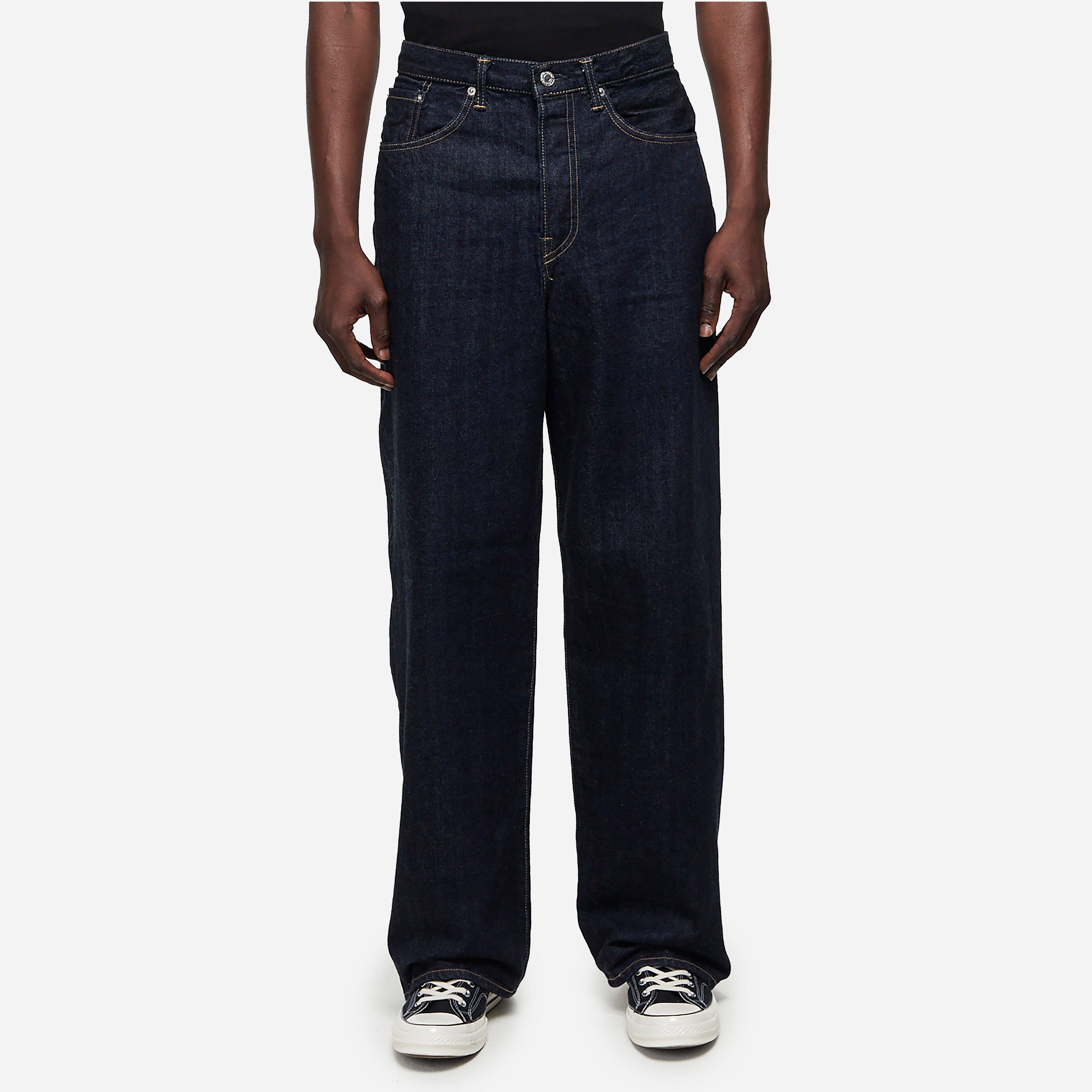 Navy - 100% cotton - Rinsed - Leather brand patch - Contrast stitching - Made in Japan - Wide leg fit, take your normal size - Model is 6'1" and wears a size 32.