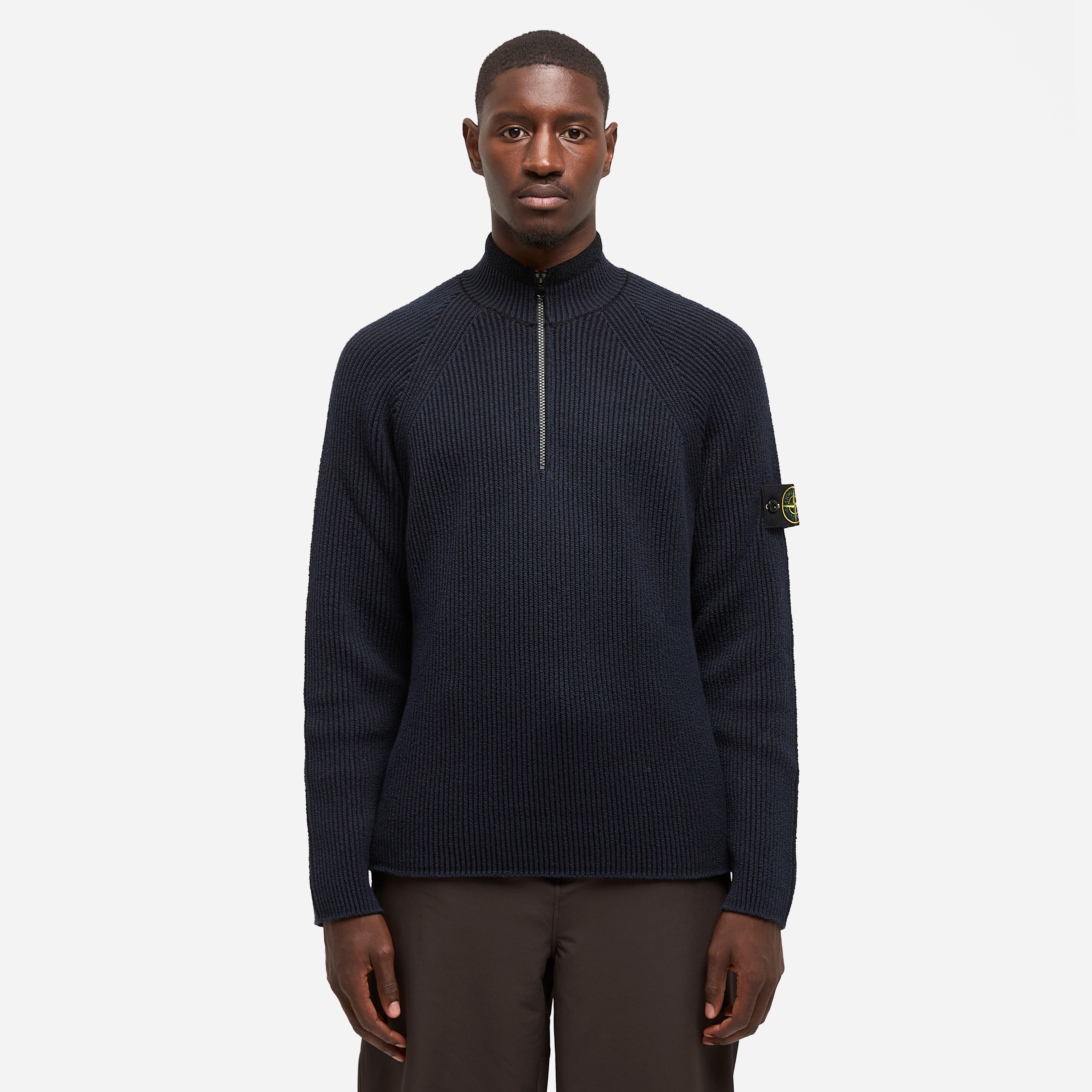 Navy - 57% virgin wool, 35% cotton, 7% polyamide, 1% elastane - Stand collar - Rib texture - Detachable compass badge - Model is 6'1'' and wears a size medium.