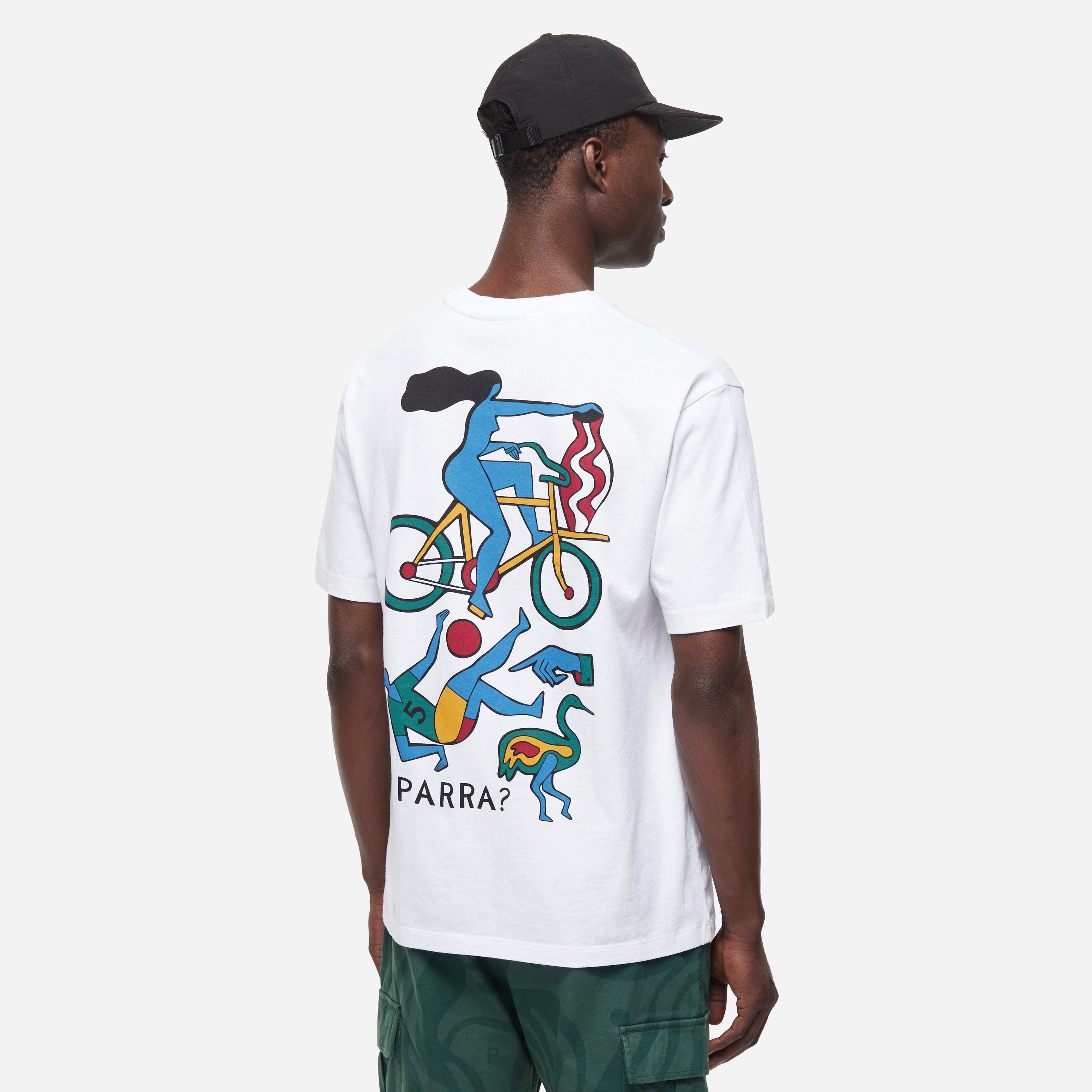 White - 100% cotton - 240gsm - Waterbased screenprint - Made in Portugal - Regular fit - Model is 6'2" and wears a size medium
