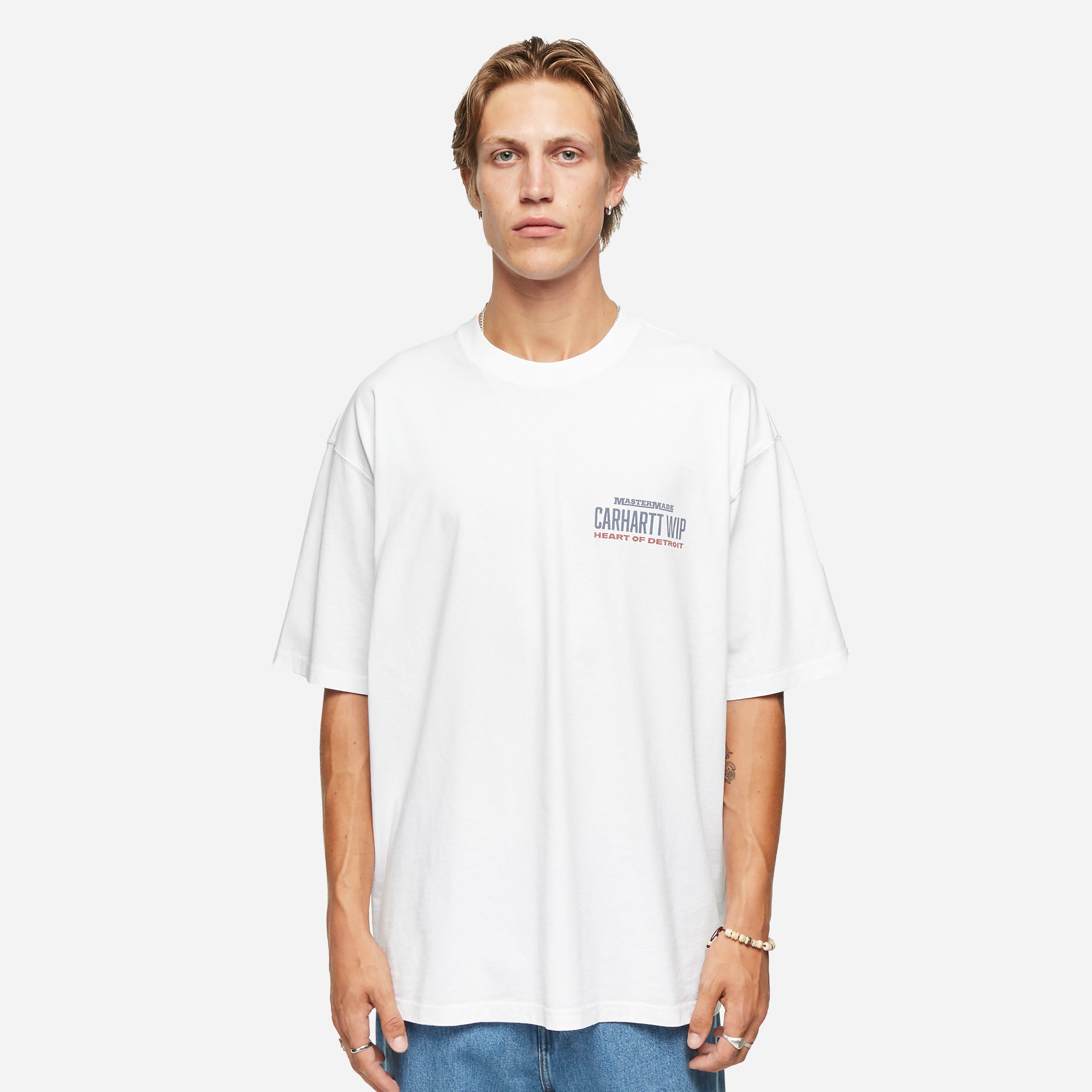 White - 100% organic cotton - Loose fit - 230gsm - Graphic prints - Model is 6'2.5" and wears a size medium.