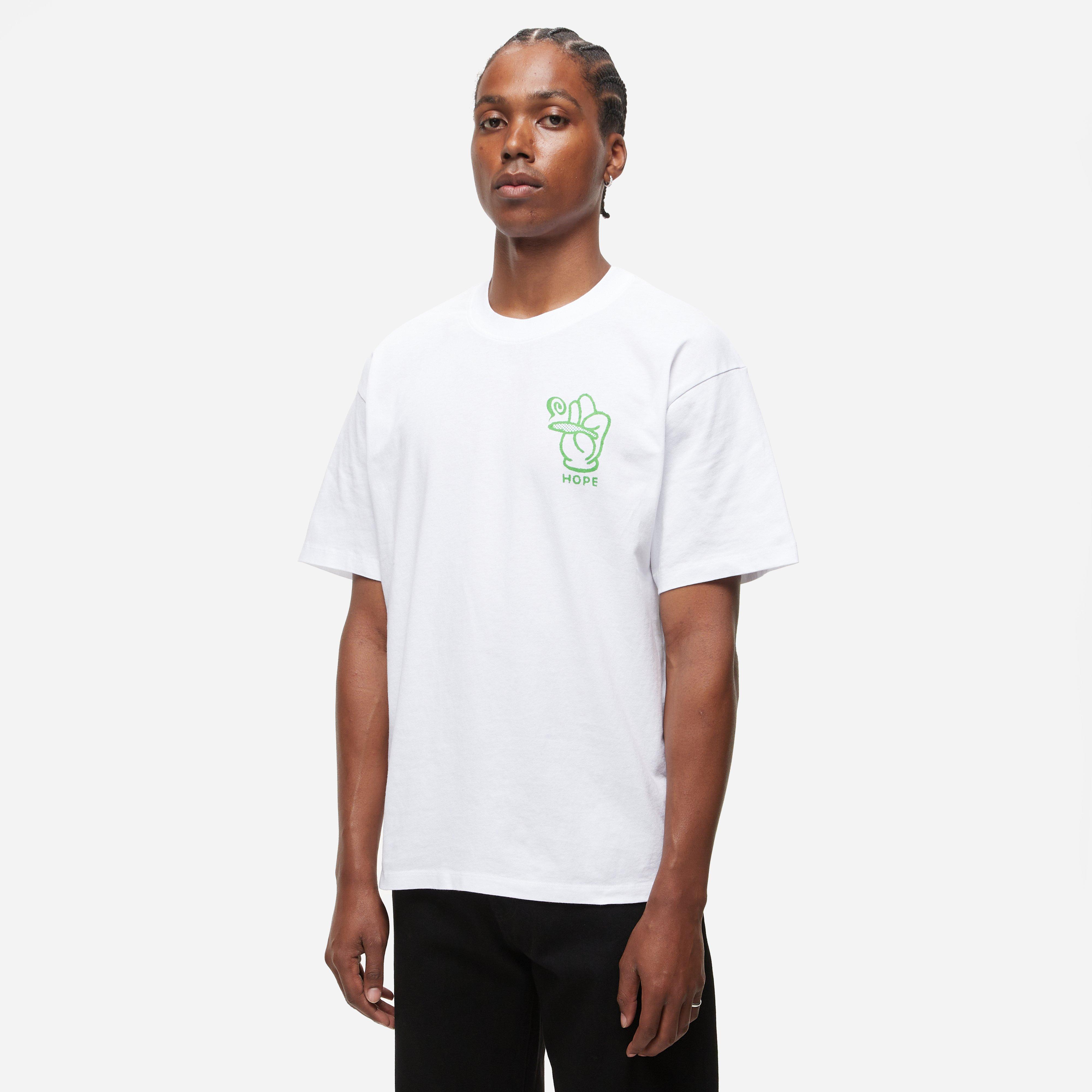 White – 100% cotton – Oversized fit – Front and back graphic prints – Model is 6’2’’ and wears a size medium.