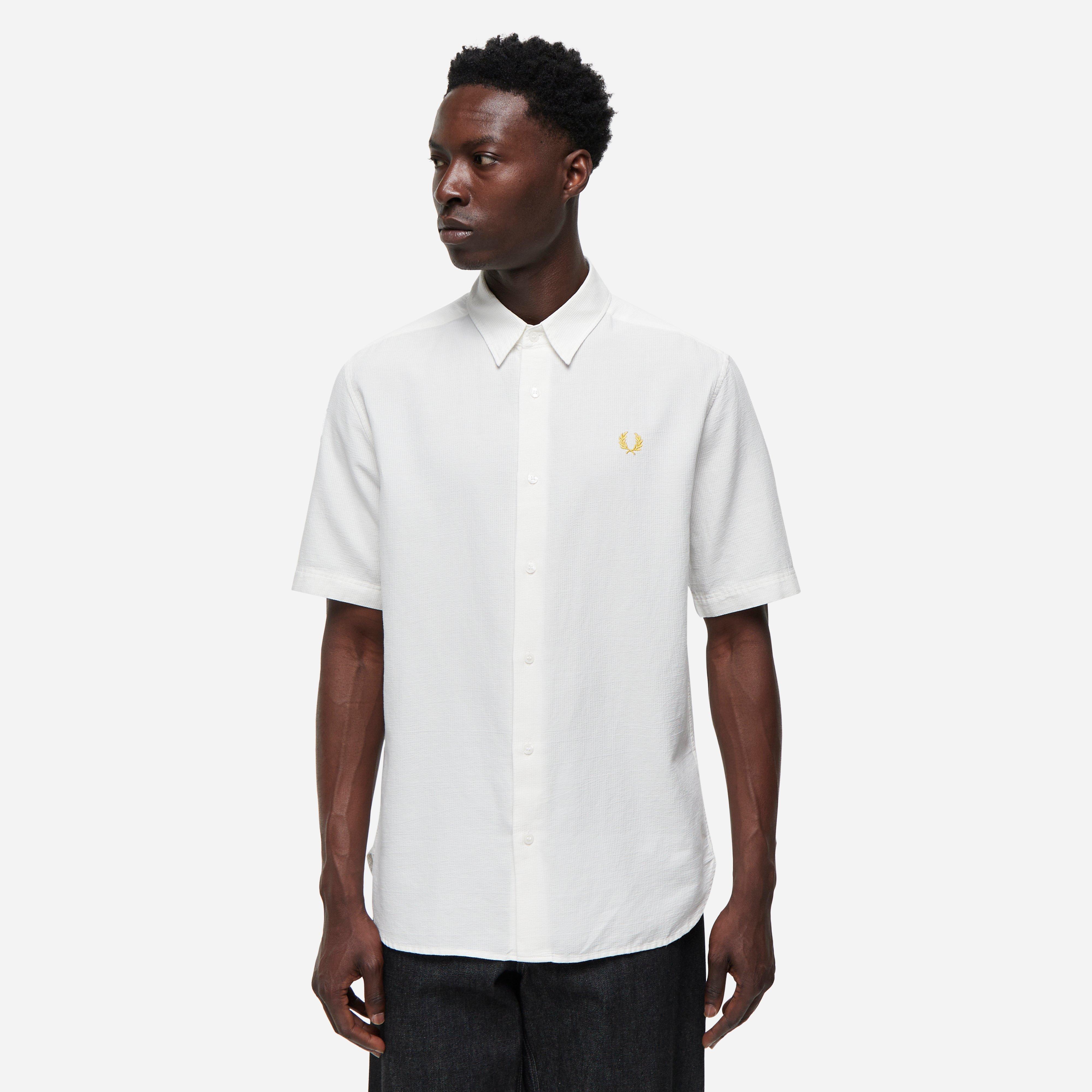 White - 100% cotton - Regular fit - Textured - Curved hem - Laurel Wreath embroidery - Model is 6'2" and wears a size medium