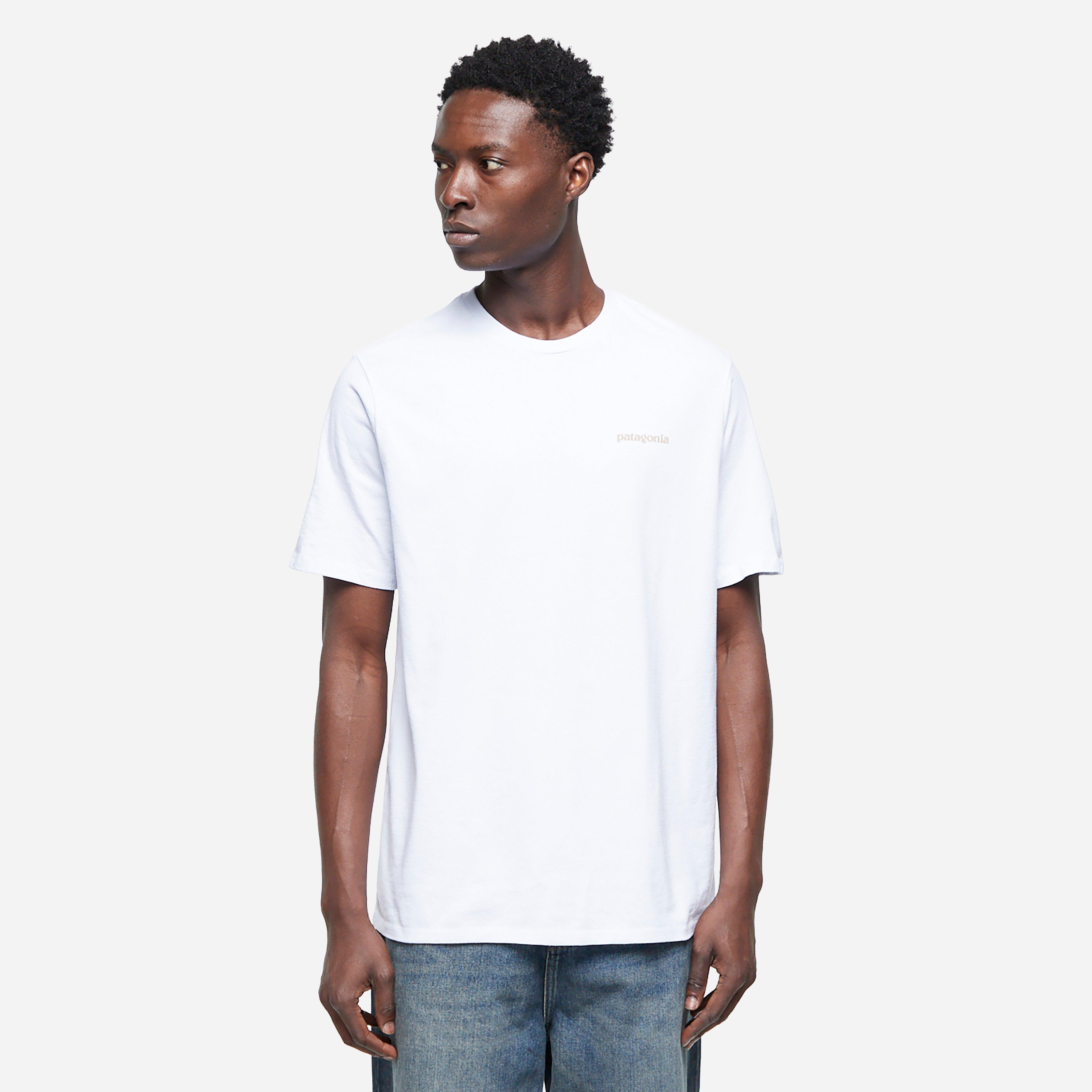The Fitz Roy Icon Responsbili-Tee T-Shirt is Fair Trade Certified sewn. White – 50% recycled cotton, 50% post-consumer polyester – Regular fit - Taped shoulder seams – Rib collar – PVC-free screen print – Model is 6’2’’ and wears a size medium.