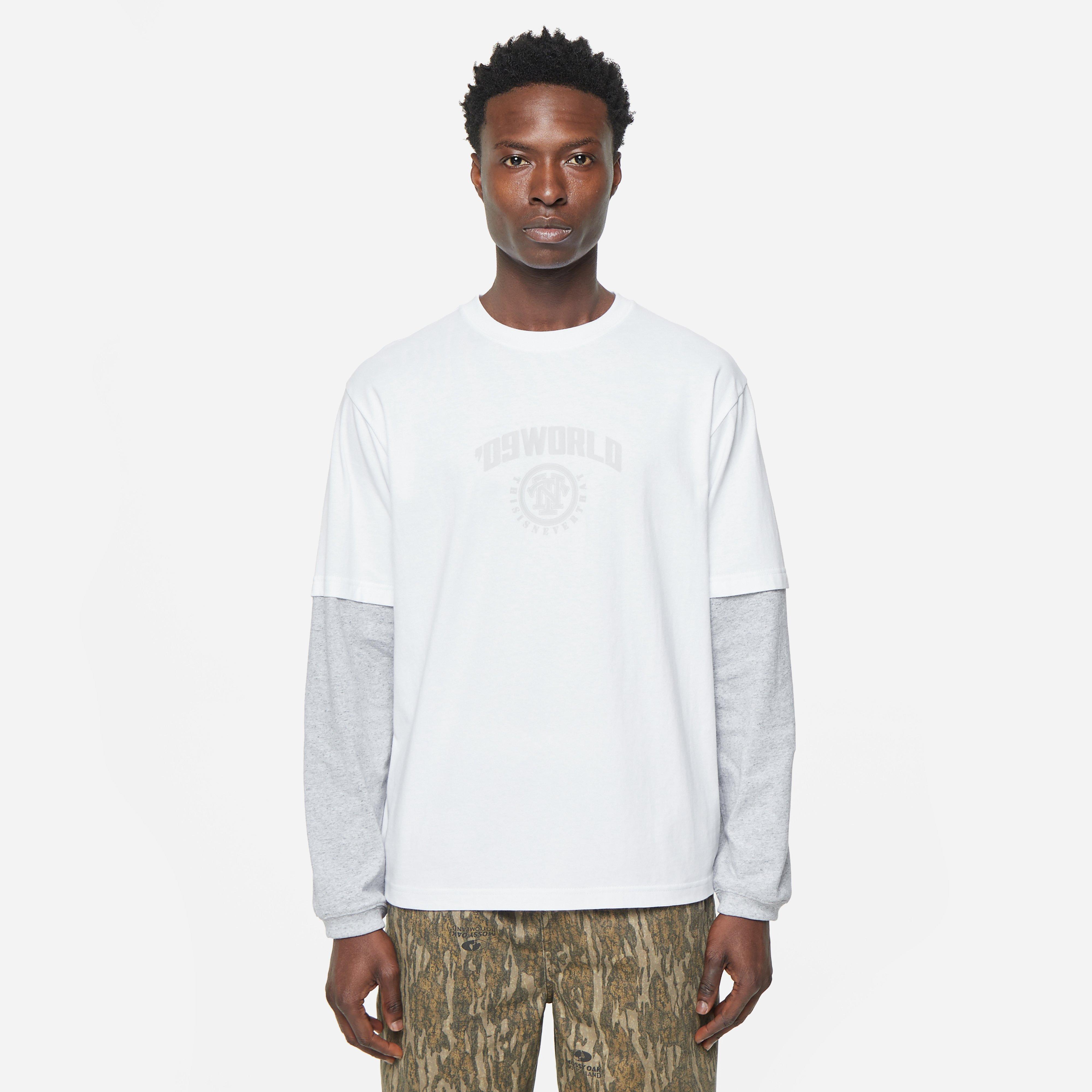 White - 100% cotton - Relaxed fit - 210gsm - Garment washed - Printed artwork - Ribbed collar & cuffs - Model is 6'2" and wears size medium.