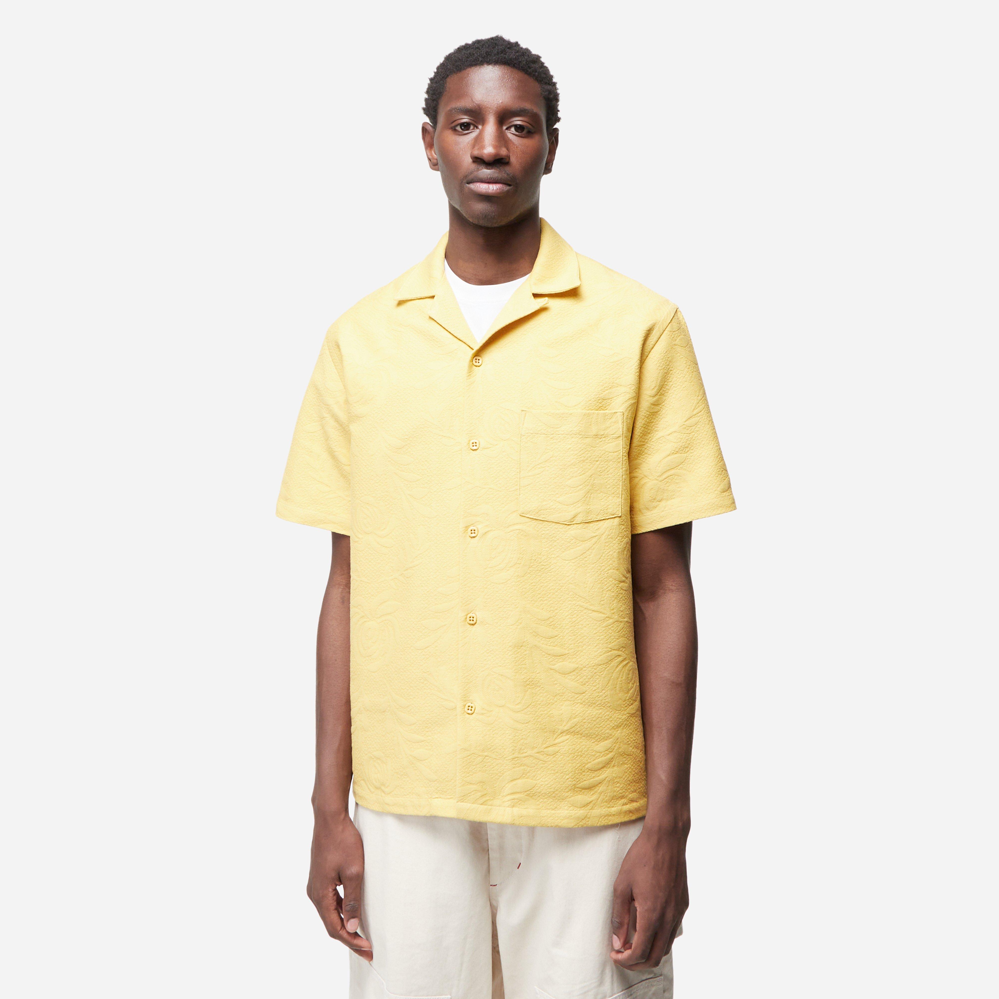 Manufactured in local towns in northern Portugal, the label celebrates the people, coast and mountains of its native region. Yellow – 100% cotton – Recycled polyester buttons – Chest pocket - Made in Portugal – Model is 6’1” and wears a medium.